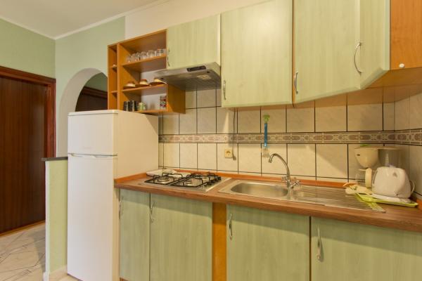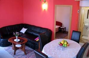 Každý apartmán má obývací pokoj, TV, satelit, klimatizace, plně vybavená.