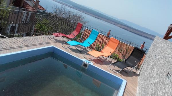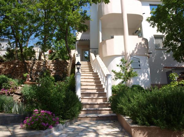 V klidné části Dramalj nedaleko Crikvenice pěkné komfortní apartmány, každý se samostatným vchodem, terasa, parkoviště a upravené nádvoří s grilem a bazénem