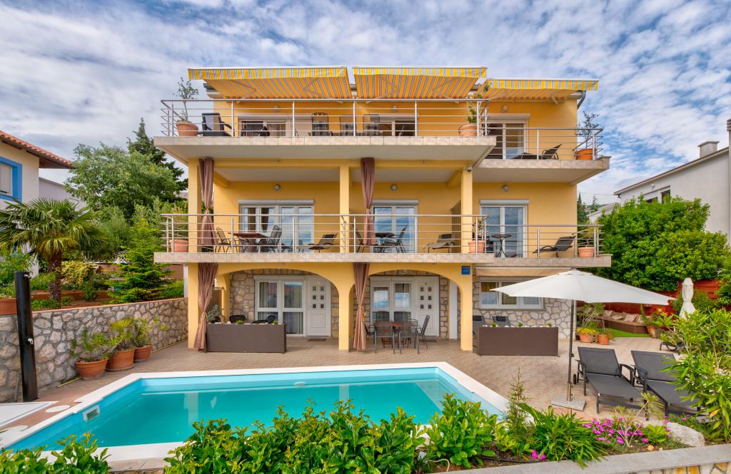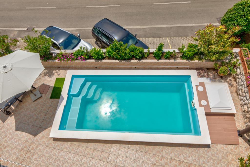 Dům s moderními a dobře vybavenými apartmány se nachází ve druhé řadě od moře, v blízkosti restaurace, trhu a pekárny. Zařízení má prostornou terasu s bazénem, lehátky a venkovním grilem. Před domem je parkoviště pro hosty. V přízemí se nachází studio A1 (ID:45200) a apartmán A2 (ID:45382) se dvěma ložnicemi, dvěma koupelnami a prostorným obývacím pokojem s kuchyní. V 1. patře jsou apartmány A4 (ID:45381), A5 (ID:45380) a A6 (ID:45235) s výhledem na moře a v posledním patře je podkrovní apartmán A7 (ID:45234), který poskytuje mimořádný komfort.