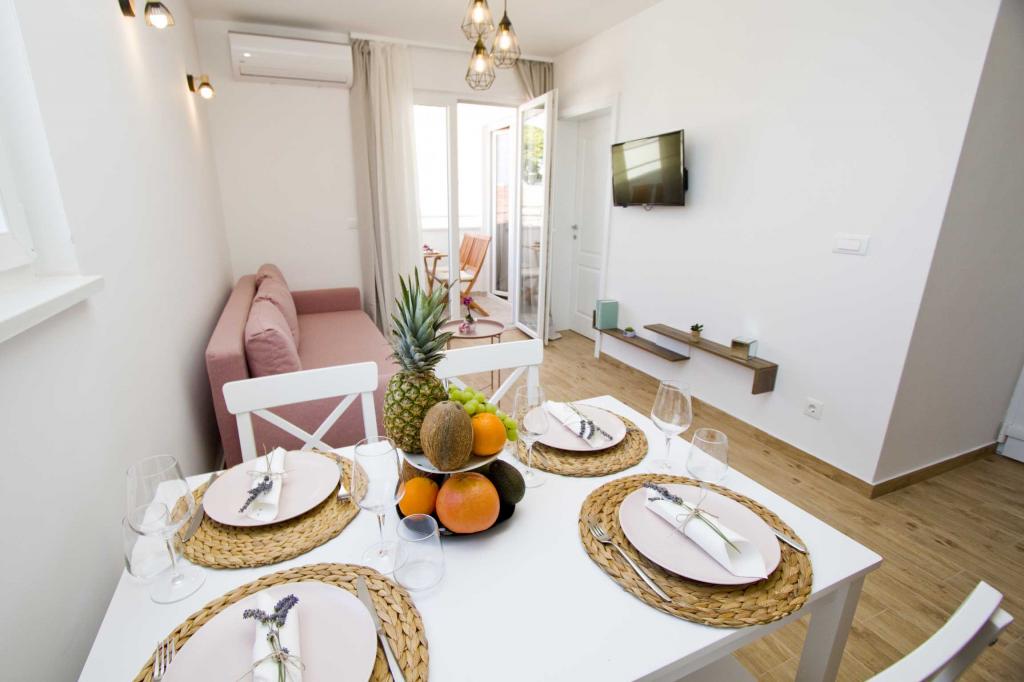 Pobytová taxa je v ceně.Krásný apartmán.Moderně zařízený, čistý, voňavý.Zařízený vším co na dovolené potřebujete. Z terasy kouzelný výhled na moře a přístav. Majitelé, vstřícní , sympatičtí vždy nápomocní.