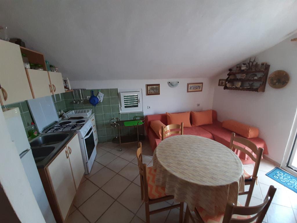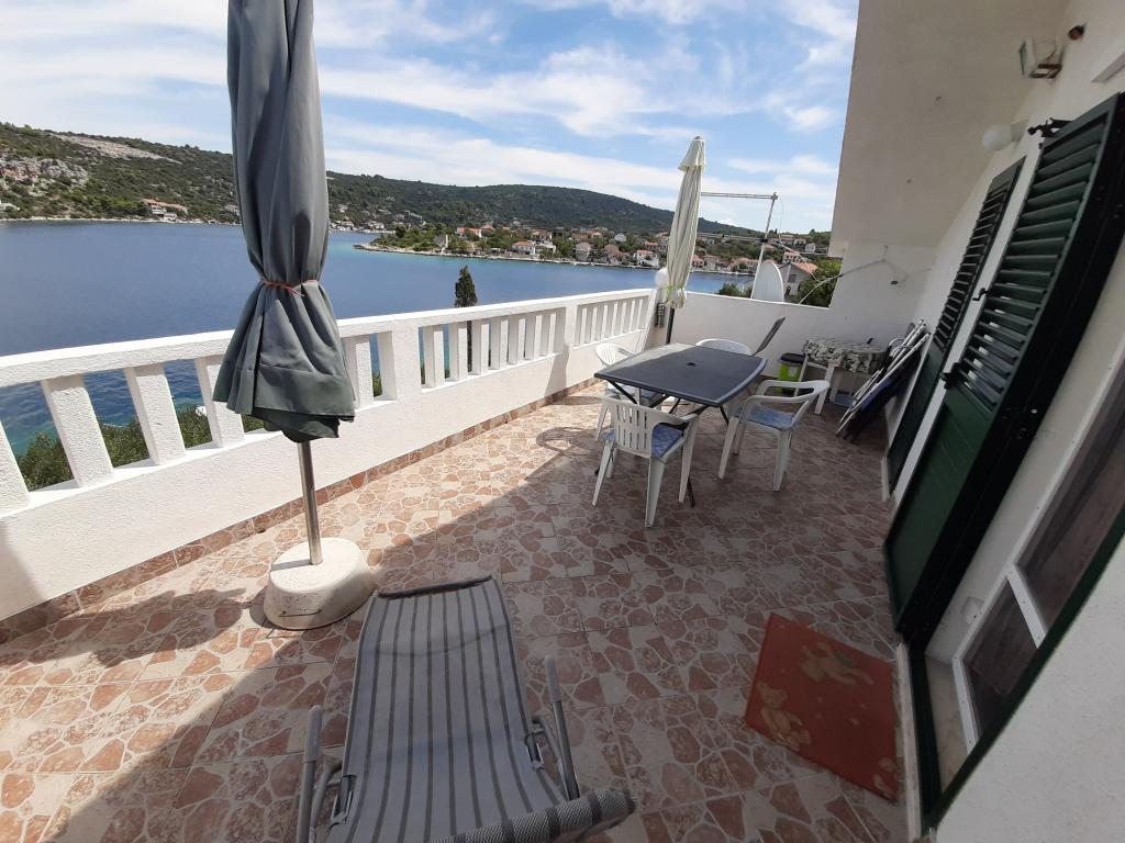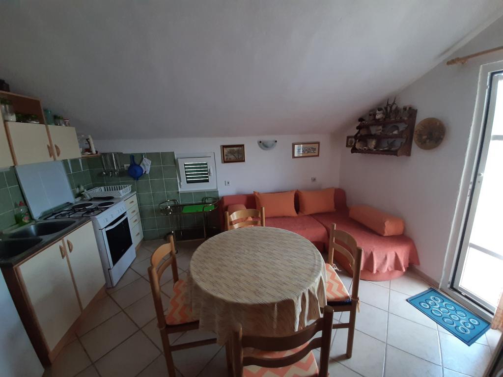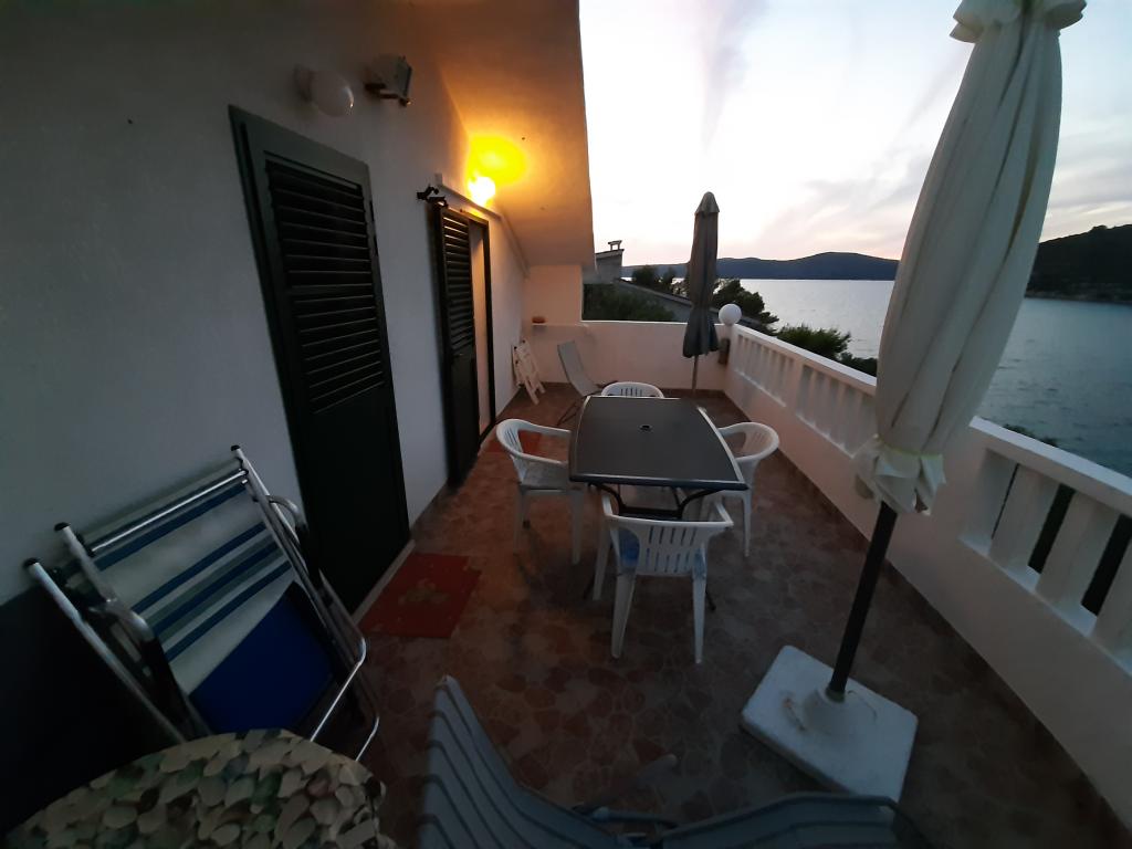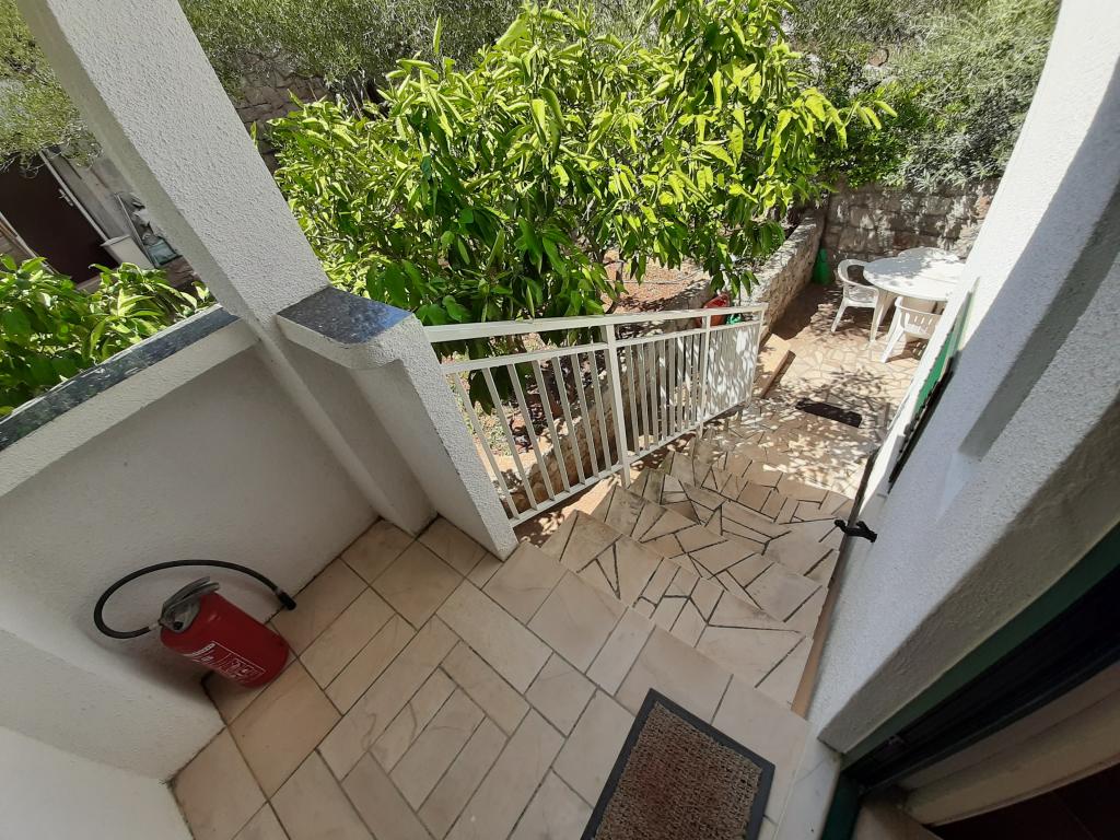 Byt je v prvním patře se samostatným vchodem v klidném prostředí 20 m od moře. Má velkou terasu s rozlohou 20 m2 s výhledem na moře, dvě ložnice, koupelnu a kuchyň s klimatizací. Ve dvoře je krb, který mohou hosté využít. Je ideálně umístěn na ostrově se samostatnou pláží (betonem). Ideální pro lidi, kteří se chtějí dostat pryč od městských davů a plavat po celý den.