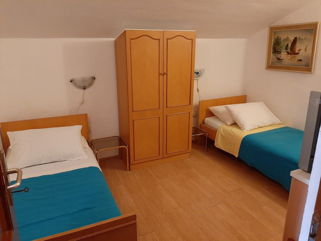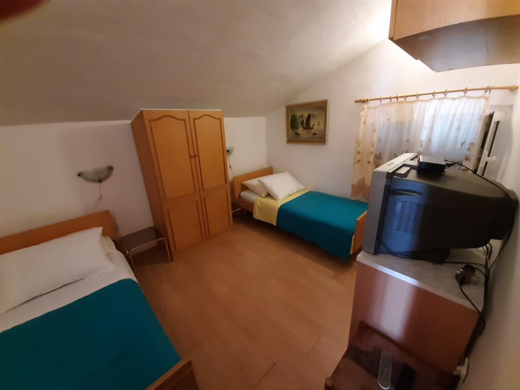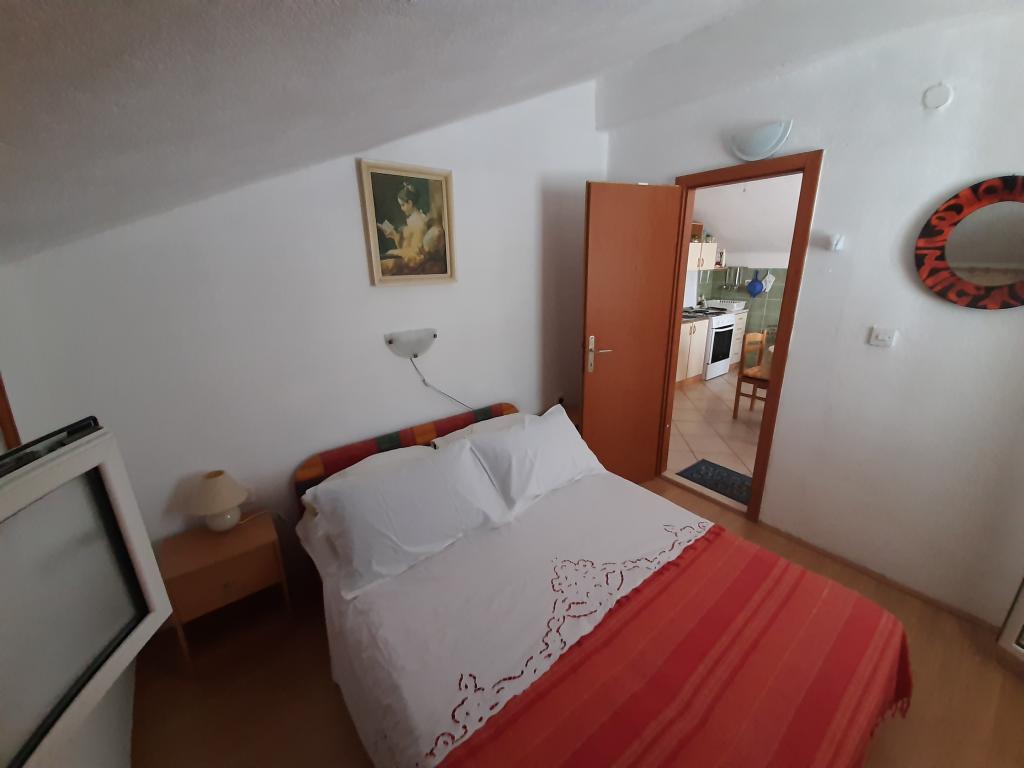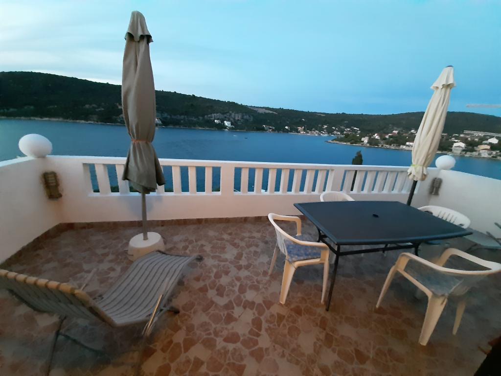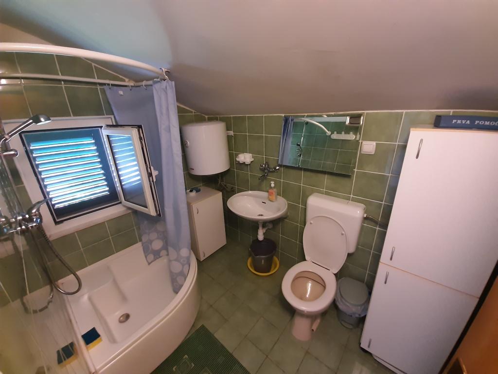Byt je v prvním patře se samostatným vchodem v klidném prostředí 20 m od moře. Má velkou terasu s rozlohou 20 m2 s výhledem na moře, dvě ložnice, koupelnu a kuchyň s klimatizací. Ve dvoře je krb, který mohou hosté využít. Je ideálně umístěn na ostrově se samostatnou pláží (betonem). Ideální pro lidi, kteří se chtějí dostat pryč od městských davů a plavat po celý den.