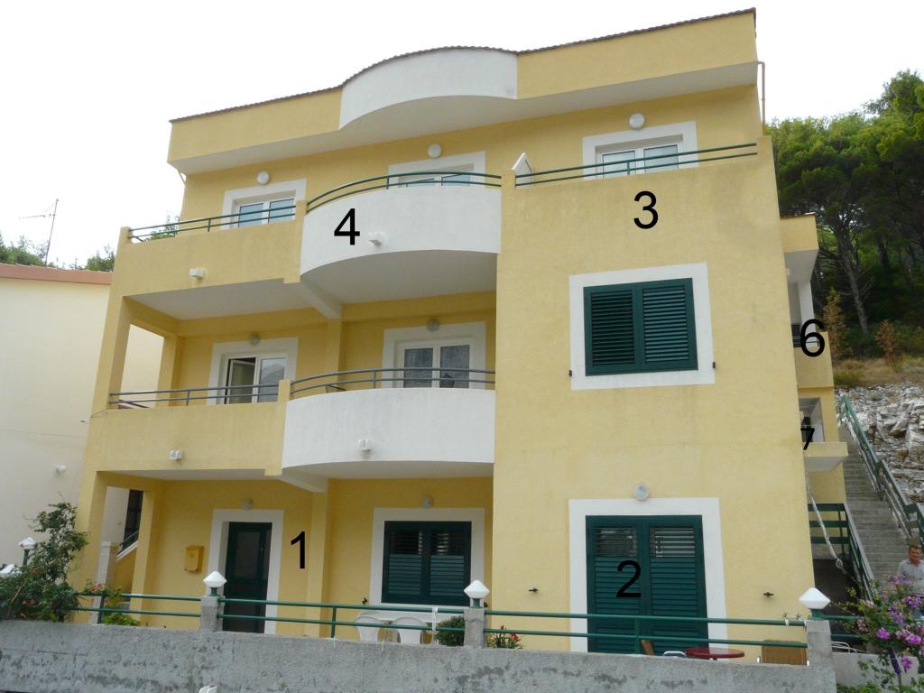 Naše apartmány se nachází 100 metrů od hotelu, nebo jen 2 minuty chůze od moře a krásné písečné pláže. Na pouhých 10 minut se konkrétní skalnatá pláž, kde si můžete vychutnat intimní atmosféru. K dispozici jsou apartmány 1.A3, 2.Studio 2, 3.Studio 2 +1, 4.A2 +1, +1 5.A4, 6.A2 +1 +5 s celkovým počtem 15 lůžek. Přátelští hostitelé budou dělat vše pro to, aby vaše dovolená příjemný a uvolněný.