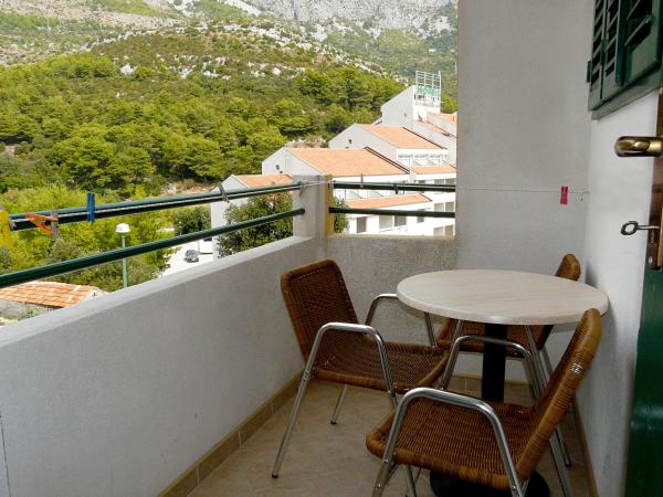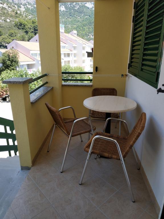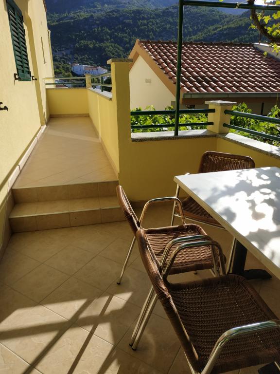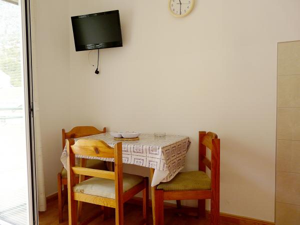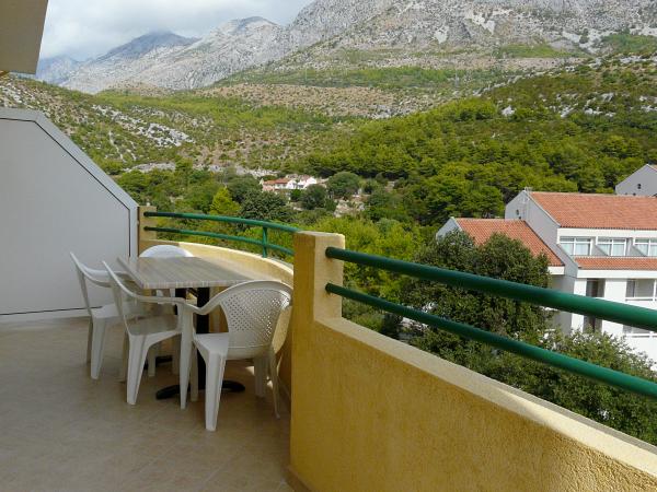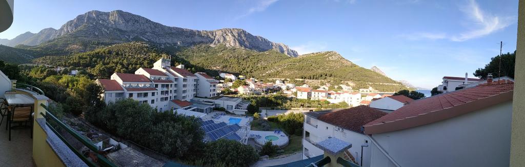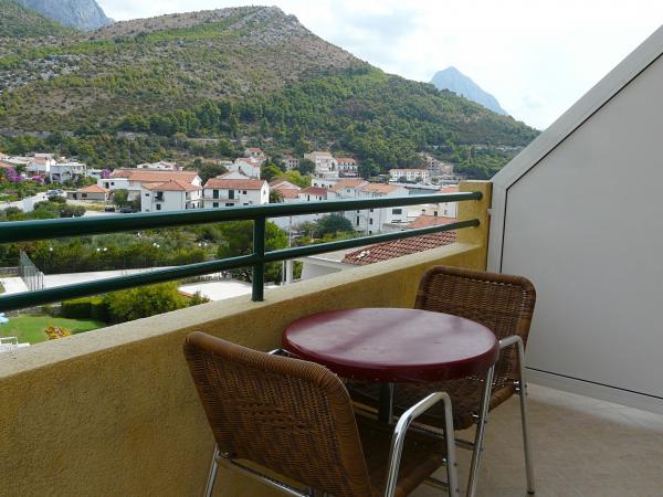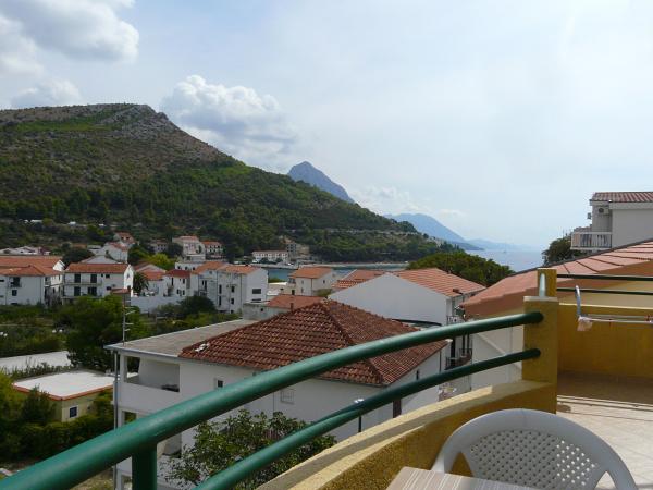 Ubytování se skvělým výhledem na horské panorama i centrum dění v Drveniku. Vybavení v plném komfortu: malá kuchyňka, lednička a sporák. V koupelně vše potřebné. Balkon s posezením. Co víc si přát!