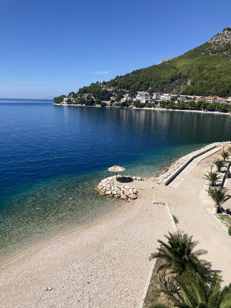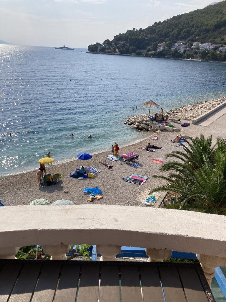 Apartmán první řada k moři, pláž před apartmánem, výhled na moře a město