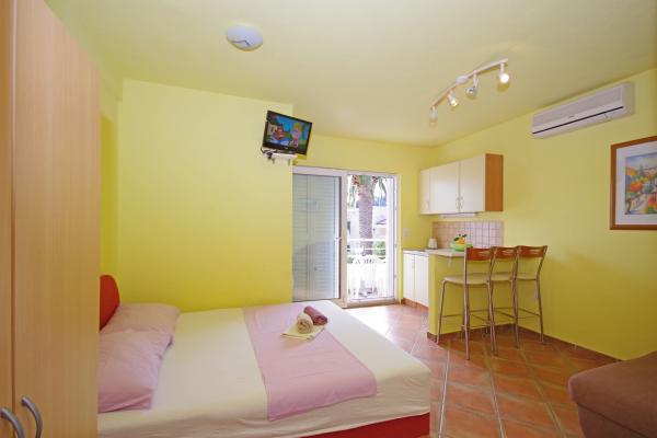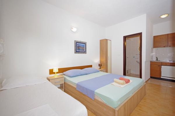Naše apartmány jsou jen 50 metrů od krásné písečné pláže a všechny jsou dobře vybavené (klimatizace, TV se satelitním příjmem a bezplatné wi-fi). Dispozici jsou 4 apartmány 2 +2, 2 +1 dvě studie, a jeden velký apartmán 4 +4. Máme také dva apartmány v centru města Makarska (pouhých 100m od hlavního náměstí): 2 +2 a studio A4.