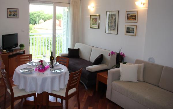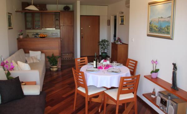 Plně vybavené a moderní apartmány v blízkosti centra města Dubrovník (Staré Město). Deset minut chůze od starého města a na nedaleké pláže vzdálen přibližně pět minut. Byt má přístup k dvěma parkovacími místy v garáži, která se nachází ve stejné budově. Kromě čtyř dospělých v apartmánu se může ubytovat dítě do 12 let na přistýlce. (Umístění dítěte bez příplatku)