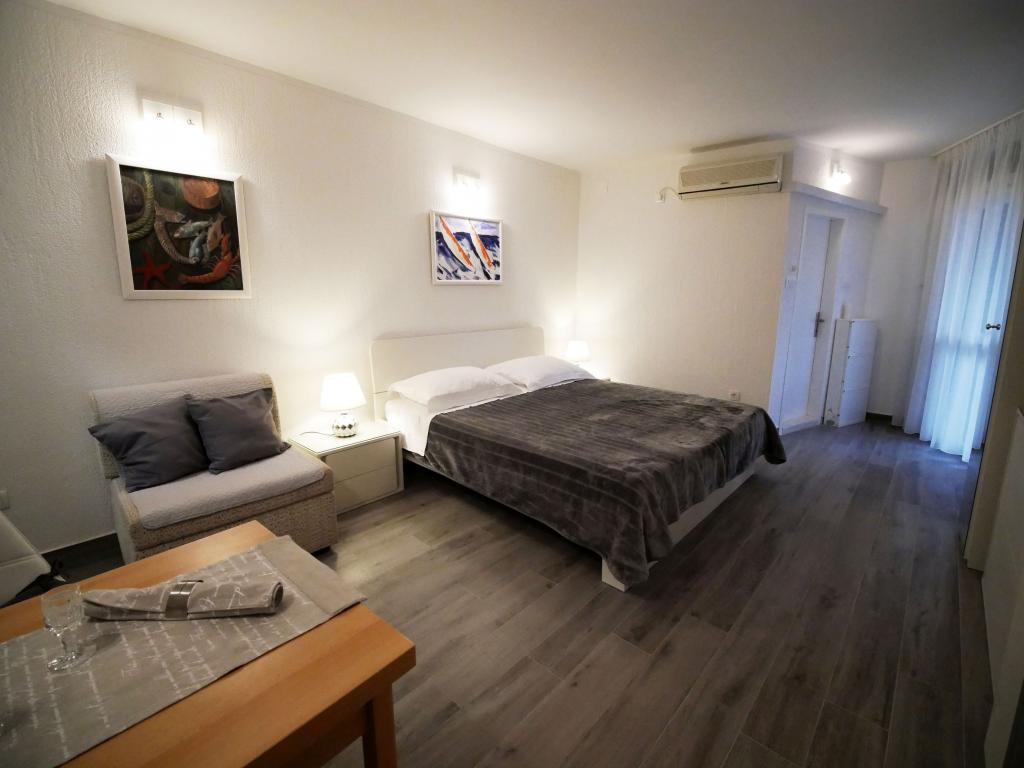 Studio Apartments Lapad se nachází jen 150 m od písečné pláže, 50 metrů od autobusového nádraží, odkud se můžete dostat do staré město oblasti Dubrovnik pro 15-lichá minut, a jen pár minut chůze od pekárny, supermarketů, bank, pošt a nemocnice v případě potrebe.Apartman nacházející se v klidné čtvrti s vlastní zahradou a nabízí skutečnou možnost volby uklidňující odmor.Studio Byt se skládá z obývacího pokoje s pohovkou pro dvě osoby as přihlédnutím navíc rozkládací sedací soupravy. Má samostatnou kuchyň se sporákem, troubou, lednicí, mikrovlnnou troubou, toustovačem a kávovarem kavu.Kupaonica je vybavena mycí rublja.Apartman jsou klimatizované a vybavené satelitní televizí. Byt je obklopen zelenými zahradami, kde je jídelní stůl.