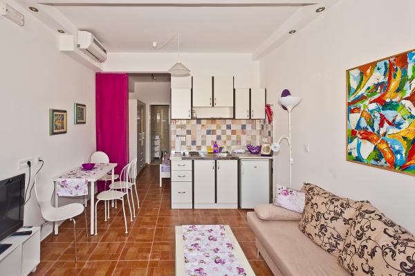 Tento apartmán se nachází v části zvané Dubrovnik Gruž. Je to 5 autobusové zastávky od Starého města. Cestování na MHD trvá 10 minut. Autobusové nádraží je 50 metrů. Pokud se rozhodnete jít na Staré Město (turistickým centrem) se dostanete příjemnou procházkou asi dvacet minut. V blízkosti apartmánu se nachází několik supermarketů, veřejné trhy, cestovní kanceláře, směnárny, banky, restaurace. Pokud chcete jít na výlet lodí v blízkosti hlavního přístavu, ze kterého můžete plout do nedalekého souostroví a ostrov Korčula. Byt se nachází v klidné oblasti. V blízkosti dětského hřiště v přední části bytu je parkování zdarma. Věnujte zvláštní pozornost na čistotu bytu !!