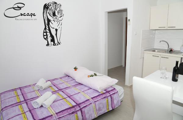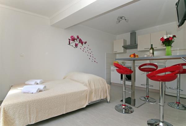 Nově zařizené, čisté apartmány na skvělém, tichém místě. Blízkost pláže, restaurací, banky, autobusu... milý ubytovatel, který vám vše ukáže, vysvětlí a zajistí dopravu z letiště, na letiště... doporučujeme... rádi se vrátíme