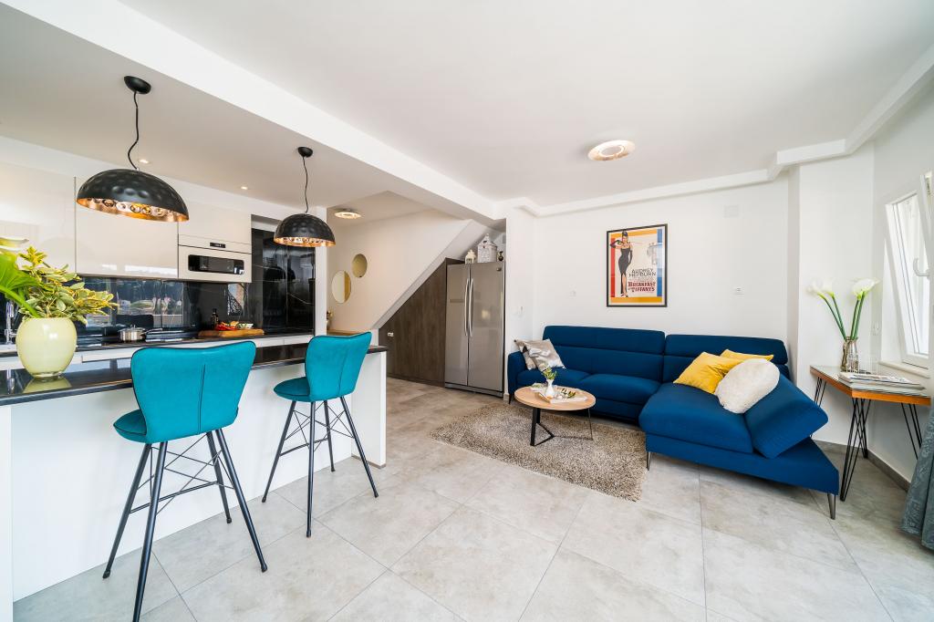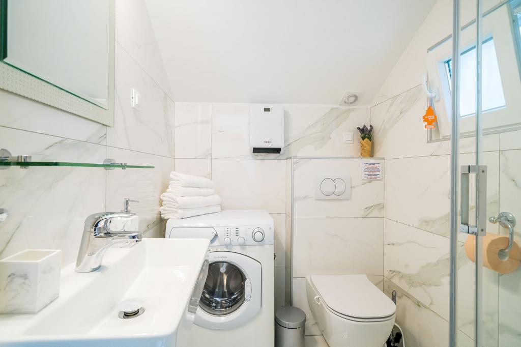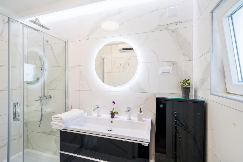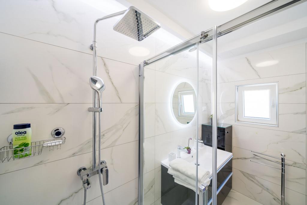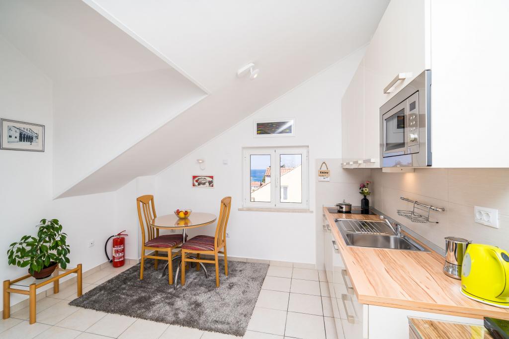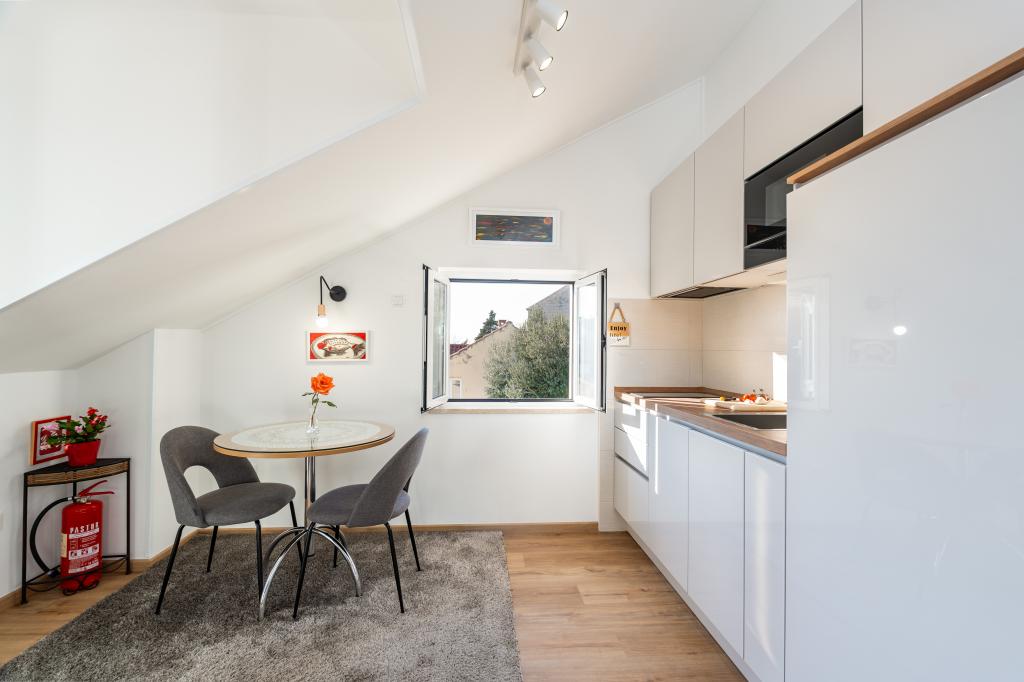 V první řadě, abychom Marijaně ještě jednou poděkovali za její pohostinnost a laskavost, apartmán nabízí vše, co potřebujete, abyste se na dovolené cítili extra. Od klimatizace v obývacím pokoji a v ložnici, pračka, kávovar, TV nabízejí různé v různých jazycích. Tento byt právem patří k Luxus Apartments. Pohled z balkonu se táhne od Lapadu k moři. Z bytu na pláž jsme potřebovali 5-6 minut, snadná procházka. Auto jsme nechali na parkovacím místě od apartmánu a během pobytu jsme ho již nepoužívali. Obchody, restaurace, autobusové nádraží se nachází několik minut od apartmánů. Jediná věc, která by někomu, kdo má problémy s koleny, mohla vadit, jsou Schody vedoucí na Promenádu a Plaza, osobně nás neobtěžovaly. Podívali jsme se na to jako na malé cvičení. Lapad se nám moc líbil a Apartmán ještě víc.