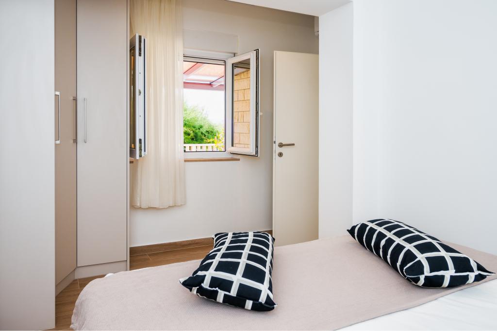V Apartments Bruna Vám nabízíme ubytování v domě jen pár metrů od moře a písečné pláže. Je důležité poznamenat, že nabízíme 2 apartmány v přízemí domu přímo na pláži - ideální pro starší lidi a rodiny s malými dětmi. V domě, jen pár kroků za ním (samozřejmě pod hlavní silnicí), ve druhém patře (z jehož balkonu máte otevřený výhled na moře a ostrovy), Vám nabízíme ubytování v nově zrekonstruovaných apartmánech. Prožijte svou dovolenou v plně vybavených apartmánech, které se nacházejí přímo u moře, ve stínu tamaryšků na krásné písečné pláži!