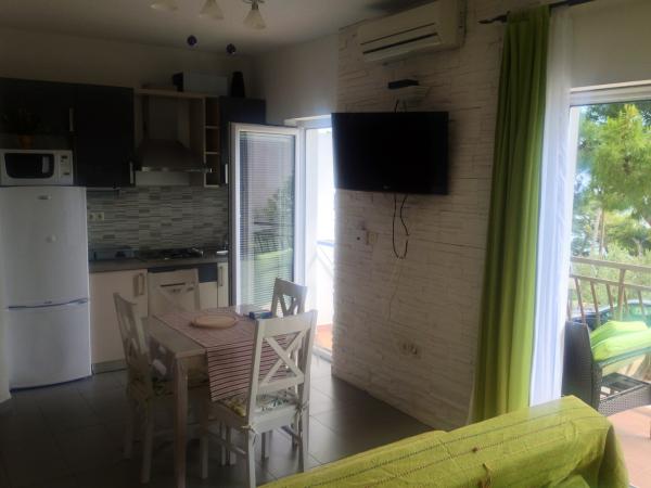 Plně vybavené a moderní apartmány v blízkosti písečné pláže. Parkování zdarma. Příjemné místo pro grilování, se zahradním nábytkem, obklopené středomořskou vegetací. V areálu se nachází 1 minutu chůze na pláž.