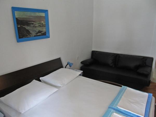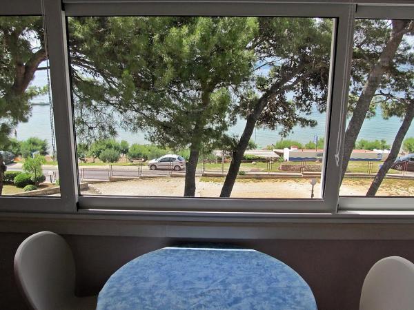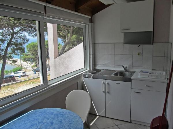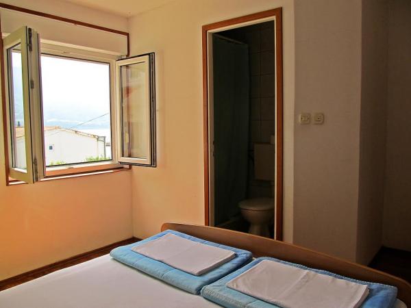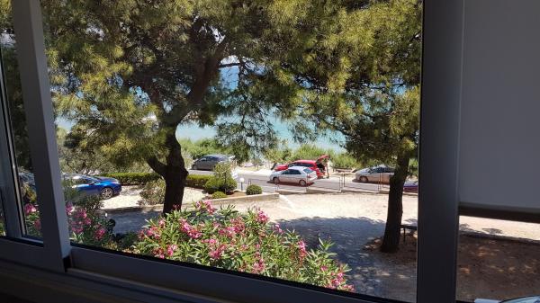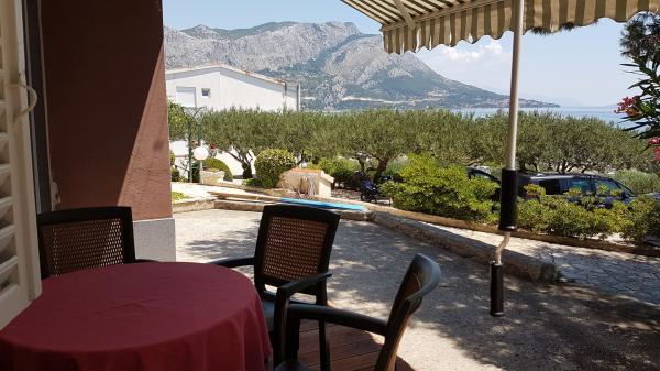 Byli jsme 3 x normální, slušné čisté, za dobru cenu. Spokojenost. Pláž hned pod domem 30 m, jen třeba přeběhnout přes silnici ktera je dost frekventovaná. Písčitá pláž !!! Ziadne kamínky jen jemný písek ale v srpnu dost přeplněná hlučnými talianmi.Par minut (15-20) peso, je městečko Omiš, pěkně namestie plně hospod, a dobře pivo Karlovačko prijemne posezení je to mimo hlavní silnice tak pohoda, hra hudba ...