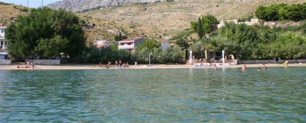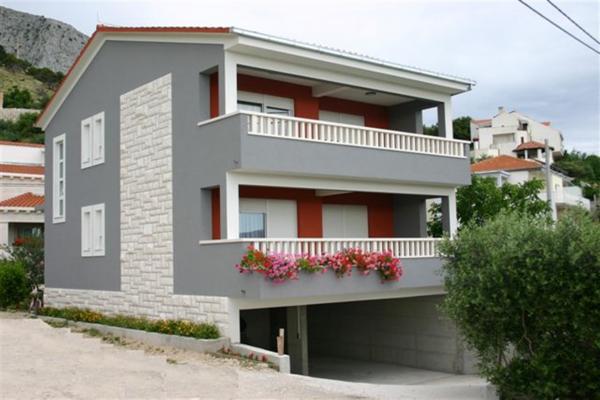 V domě jsou dva byty o velikosti 75m2. Každý apartmán má dvě ložnice, jeden pokoj má dvě lůžka a druhý tři lůžka. V prostorné kuchyni s obývacím pokojem je možnost ubytování pro dvě osoby na gauči. Na chodbě je koupelna s toaletou a toaletou. Oba apartmány mají prostorný balkon s výhledem na moře. V přízemí jsou garáže pro auta. Na pláž, která je 150 metrů od domu, je nutné přejít silnici. Na krátkou vzdálenost je na výběr mezi několika druhy pláží a hloubkou moře. Vhodné pro děti. Na pláži si kromě koupání a opalování můžete vybrat z různých doplňkových forem zábavy. Vzdálenost k stánku s chlebem je 50 metrů, obchody 200 metrů a v okolí několik typů restaurací.