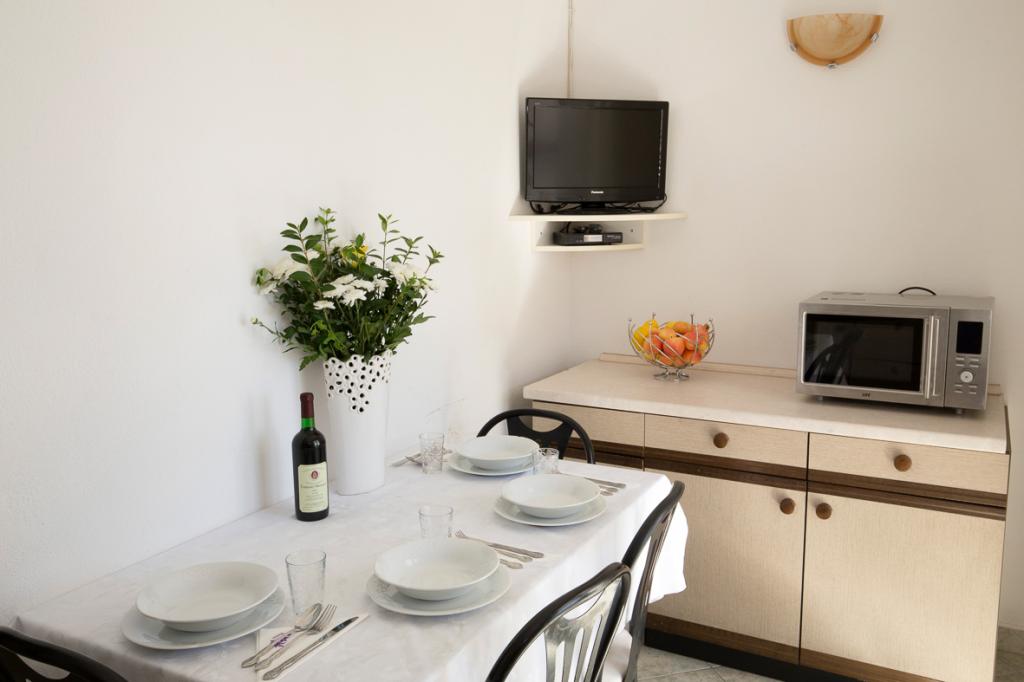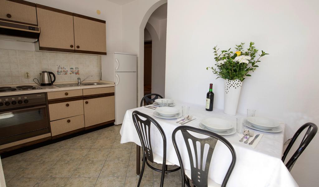 Ubytováni jsme byli v apartmánu A3 (č. 5). Apartmán má vše potřebné, hlavně je vše funkční, čisté. Parkování ve stínu. Obchod, pekárna, restaurace vše do 50 m. Rovný terén. Písčité pláže, sprchy na pláži, čisté moře.