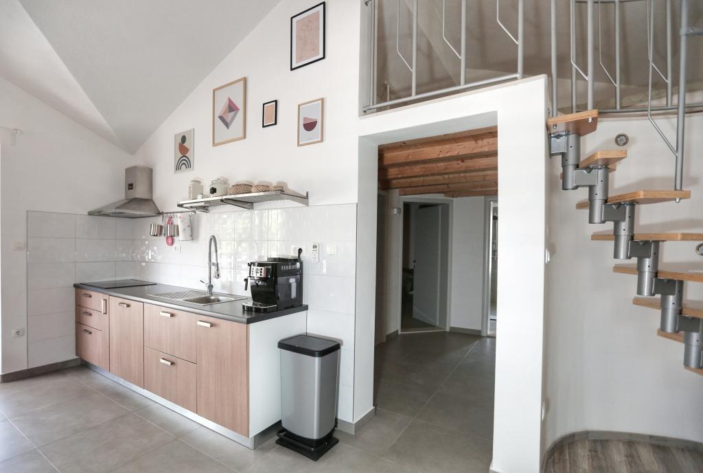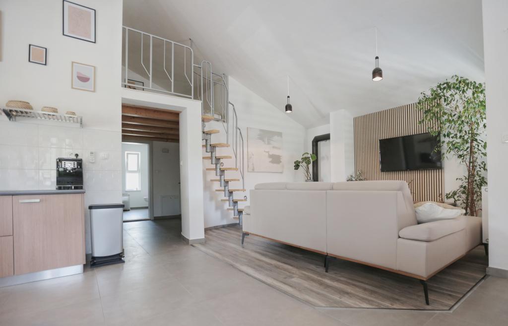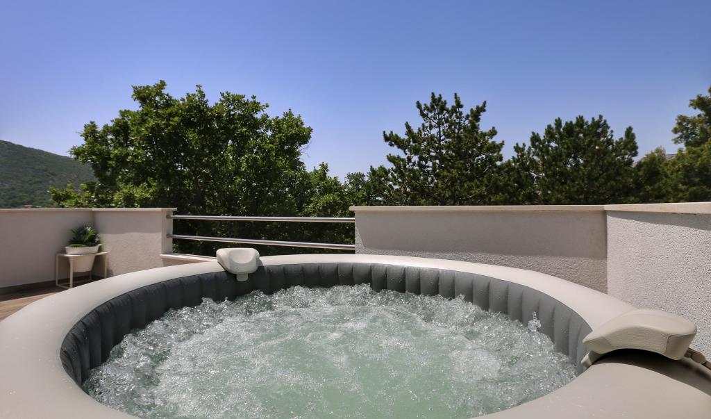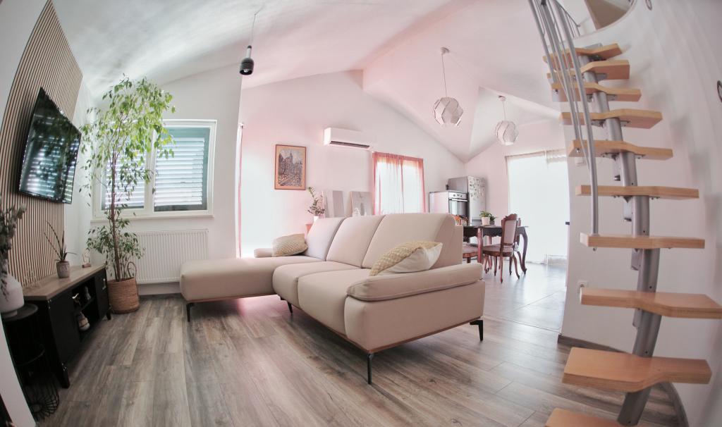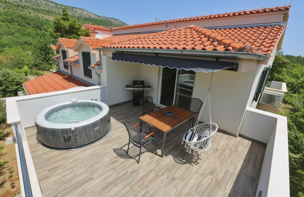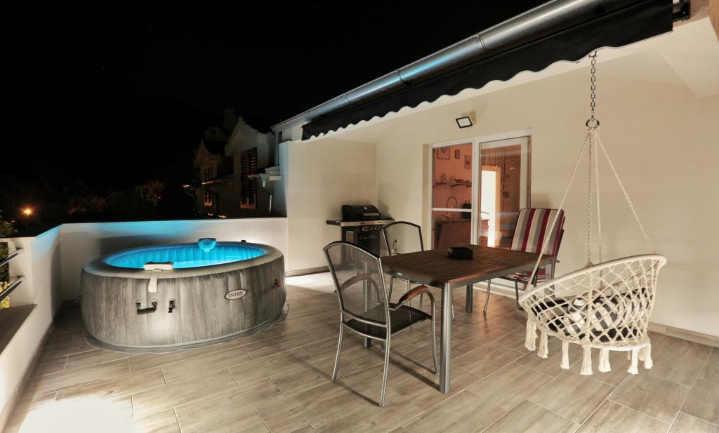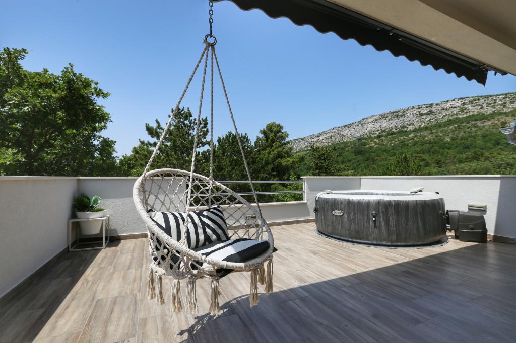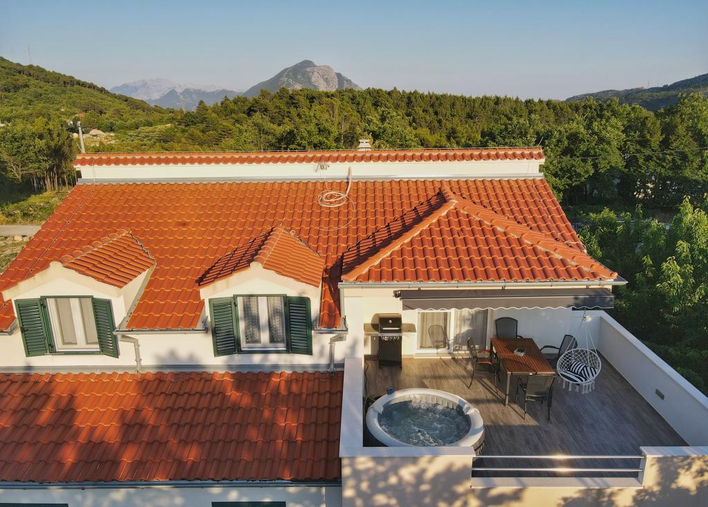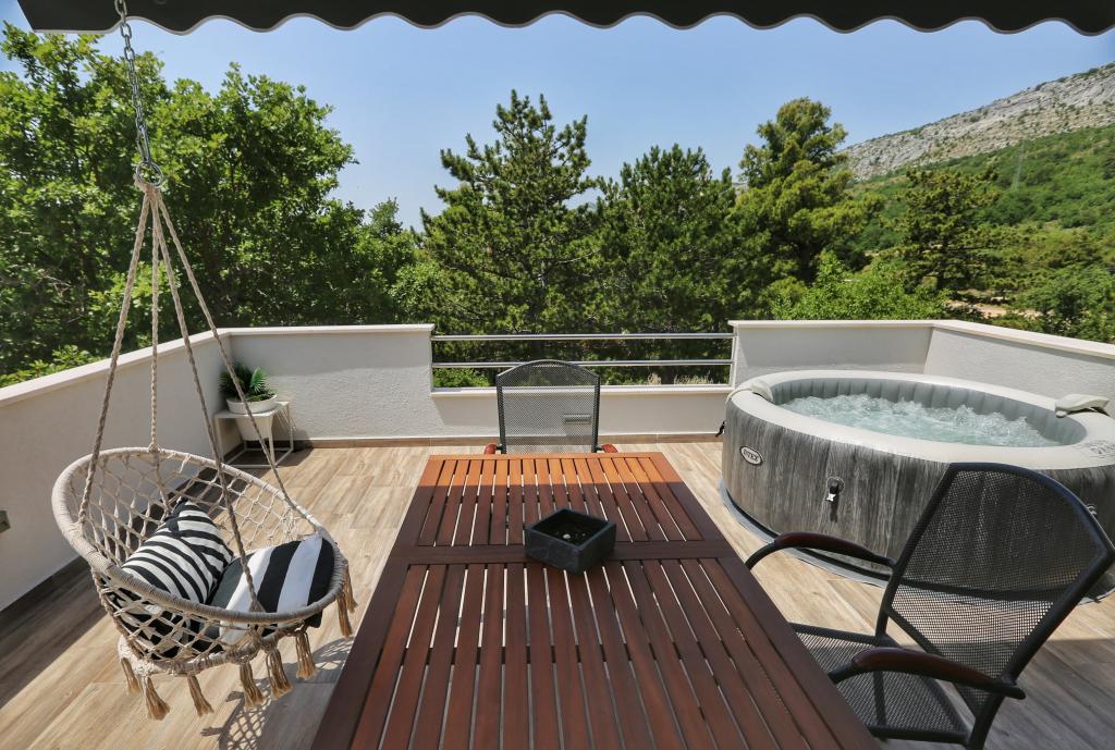 Apartmán tugare se nachází v prvním patře rodinného domu, v klidném prostředí, pouhých 6 kilometrů od města Omiš a 20 kilometrů od města Split. V bezprostřední blízkosti se nachází krásný kaňon řeky Cetiny, pohoří Mosor a Biokovo, stejně jako nespočet pláží a zátok s křišťálově čistým mořem. Byt je plně vybaven pro rodinný pobyt, skládá se ze dvou pokojů, galerie s velkou přistýlkou, prostorné koupelny, velkého obývacího pokoje, malé a velké terasy s plynovým grilem a vířivkou. Pro naše hosty je zajištěno uzavřené parkoviště a je možné využít venkovní gril.