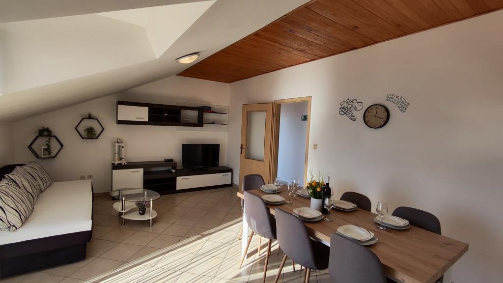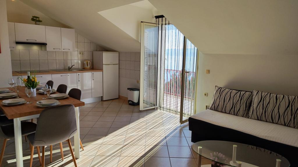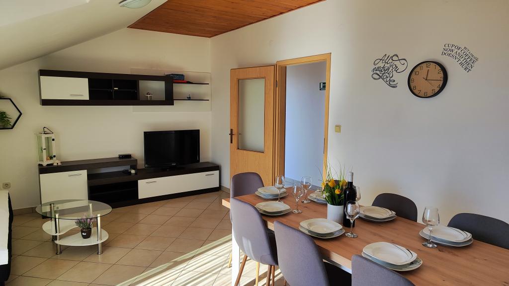 Měli jsme zde úžasný týden. Interiér bytu je zcela nový, kuchyně je plně vybavená. Absence mikrovlnné trouby je zanedbatelná. Pračka je úžasná, nikdy jsme nebyli na místě s pračkou. Teď víme, že je dobré to mít. Věčné panorama na snídani, večeři a rozhovory. Hostitelé jsou přátelští a ochotní, rozuměli jsme si, i když jsme nemluvili stejným jazykem. Moře je o 150 m níže, cesta zpět je trochu strmá, ale stojí za to jít dolů. Auto se doporučuje koupit kvůli výše zmíněným nápadným dílům. Lidl ve Splitu cca. 14 km daleko, Ribola cca. 700 m, Tommy Market, Studenac cca. 800 m. Doporučujeme pizzerii Therapy na pláži. Hamburger je stejně lahodný jako kebab v housce. O kousek dál po pláži se doporučuje bar Rivica i na zmíněné hamburgery a kebaby. Vzhledem k tomu, že obě místa jsou na pláži, je odpoledne docela přeplněné. Pokud chcete písečnou pláž, vydejte se do Omiše (je to 4 km), voda je méně slaná než u nás a nejdůležitější je písečná pláž. Pokud nechcete parkovat u pláže, můžete počítat s poplatkem 1,5 eur/hod. Byt je vybaven vším, je zde i klimatizace, za kterou se nemusí doplácet, mohli bychom si přivézt i psa, ale to by chudákům ublížilo. Žádná tráva, žádný zápach, všichni ostatní psi, které jsme potkali, byli "roční" psi, bez ohledu na to, cítil se u nás dobře, k moři jsme ho vzít nemohli, ale ani jsme nechtěli. Se vším jsme byli spokojeni, doporučuji ostatním!