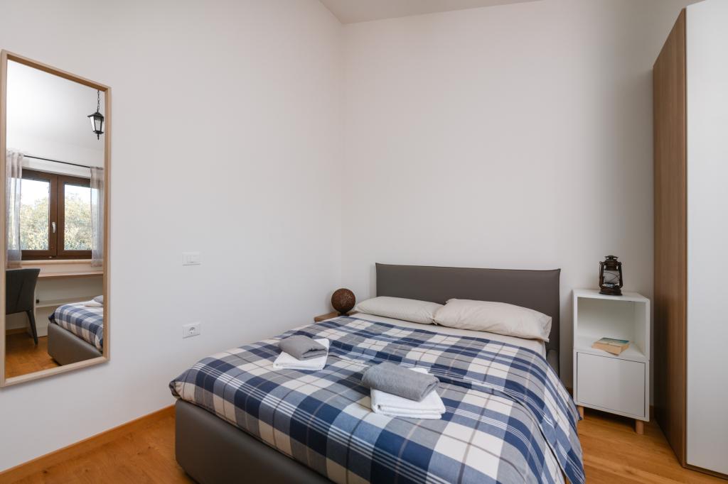 Apartmán Ana Bruna, který se nachází v prvním patře nově postaveného samostatně stojícího rodinného domu, se nachází v klidné části Fažana, obklopen olivovými háji a vinicemi. Moderní a plně vybavené nabízí pohodlné ubytování všem, kteří chtějí relaxaci a zábavu. Vnější část dvora je upravena pro relaxaci a socializaci a jsou zde dvě parkovací místa. Samotná budova je 10-15 minut chůze od pláže nebo nábřeží Fažana. Fažana se nachází v jihozápadní části Istrie a je obklopena četnými upravenými a přírodními plážemi. V bezprostřední blízkosti Fažany se nachází Národní park Brijunské ostrovy, který vás okouzlí svou přírodou a kulturně-historickými pozůstatky. Bohaté letní animační programy a akce ve Fažaně, stejně jako možnost výběru různých rekreací, zajistí nezapomenutelné léto pro každého.
