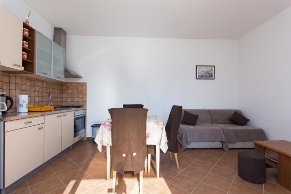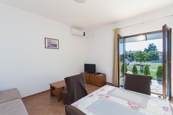 Byt (40 m2) se nachází v přízemí v klidném místě Valbandon. Skládá se z ložnice s manželskou postelí, obývací pokoj s kuchyňským koutem (se dvěma přistýlkami - pohovka), koupelna se sprchovým koutem a velkou terasou. V blízkosti domu je dřevo s značených cyklistických i turistických tras. Parkoviště je ve dvoře. Klimatizace, bezplatné Wi-Fi připojení a použití BBQ. Valbandon je spojen s bažanty, městem malé romantické rybářské ze kterého loď můžete navštívit národní park Brijuni. Pláž Valbandon je vybavena zařízením pro děti.