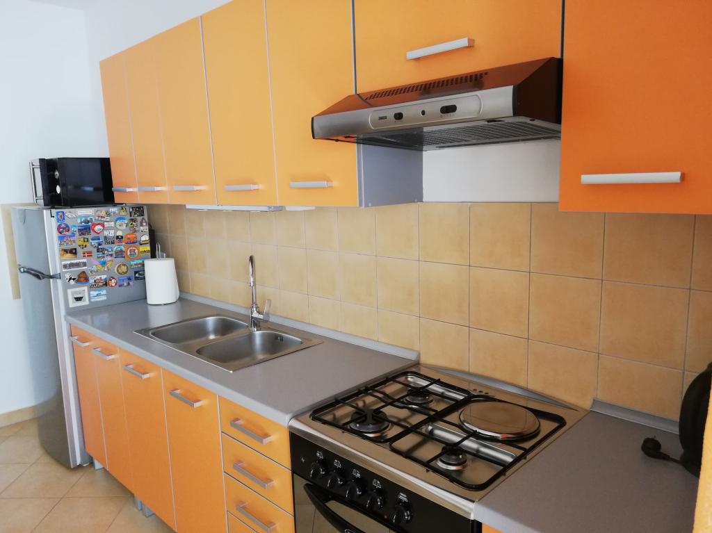 Apartmán pro 2-4 osoby, vysoké přízemí, Fažana, Valbandon, v klidné čtvrti rodinných domů naproti ostrovům Brijuni (1,6 km od Fažany a 5 km od Puly), 51 m2, obývací pokoj (rozkládací pohovka pro 2 osoby) s kuchyní (jedna místnost), ložnice (manželská postel), koupelna, balkon 9m2, gril. Moře 400 m od domu, krásná pláž ideální pro děti a promenáda z Valbandonu do Fažany.
