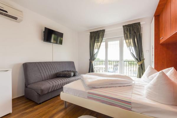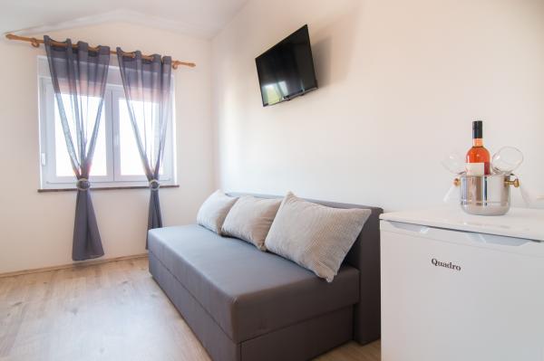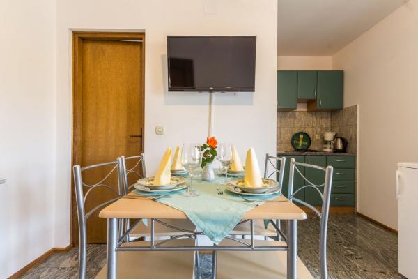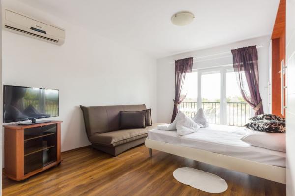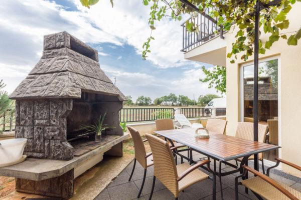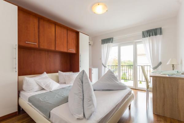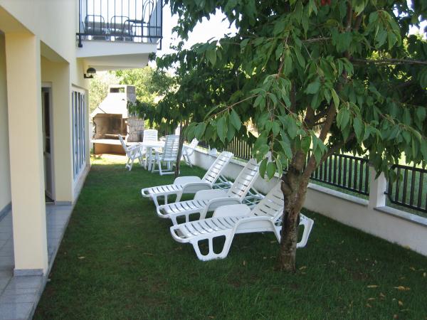 Plně vybavené a moderní apartmány a pokoje v klidném místě Valbadon, které je pouze 1, 5 km od centra města bažantů a 800-900 m od pláže. Všechny pokoje mají klimatizaci, Wi-Fi, balkon a zahrada s lehátky a gril, který je k dispozici pro hosty. Samozřejmostí je také bezplatné parkoviště pro hosty. Nejbližší obchod je asi 100 metrů a restaurace se nachází přímo přes ulici. Město Pula je 6 km daleko, zatímco letiště Pula 12 km. Brijuni jsou těsně přiléhající k asi 2 km a může být dosaženo dostupný lodí.