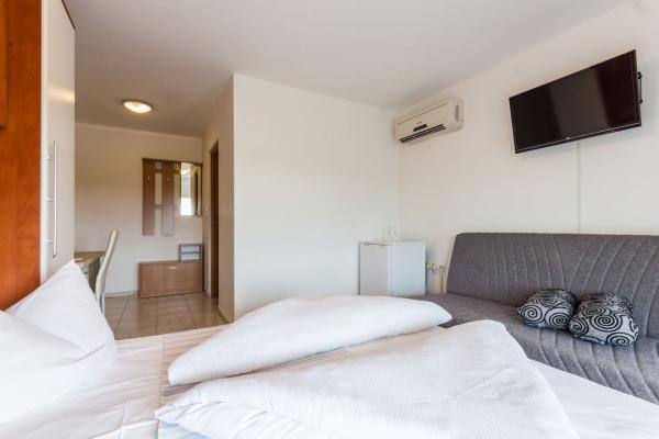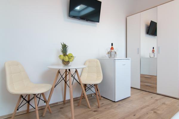 Pobytová taxa není v ceně.Nabízíme Vám snídaně stůl je za poplatek 7 EUR za osobu a den. Přistýlka bude účtováno navíc 10 eur za osobu a den.