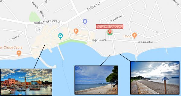 Villa Vinodolka dům se nachází přímo u moře v klidném místě zvaném Fažana. Moře je 2 minuty chůze a do centra 5min. V blízkosti je také krásné Národní park Brijuni (5min chůze na lodi) a město Pula, který se nachází pouhých 15 minut jízdy autem.