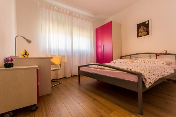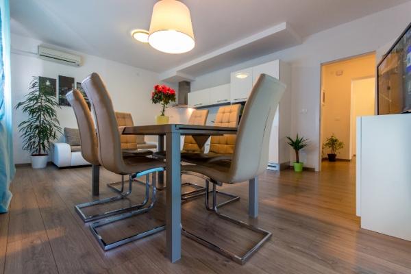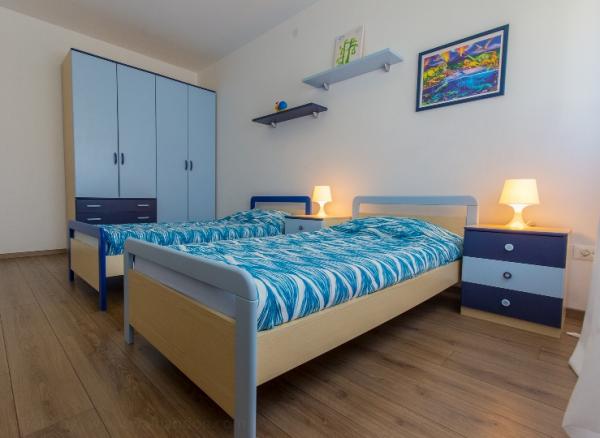 Nové luxusní a moderní byt o 105 m2, který se nachází v rodinném domě Villa Nina v klidné části Valbandona, 2 km od Fažana, a je ideálním místem pro letní dovolenou pro rodiny s dětmi. Byt má tři ložnice (16 m2, 16 m2, 10 m2), kuchyň, obývací pokoj, koupelnu se sprchovým koutem a vanou a prostornou terasu s ochranou proti slunci. Na dvoře je parkovací stání pro dvě auta a grilem. Byt má klimatizaci (bez příplatku), bezplatné Wi-Fi, možnost dětské postele a židle pro krmení dětí, satelitní TV (plazma), použití pračky je zahrnuta v ceně, pevné linky telefonu pro nouzové volání, zabezpečení sítě na všech oknech komára , trezor, myčka nádobí, kávovar, mikrovlnná trouba, atd.
