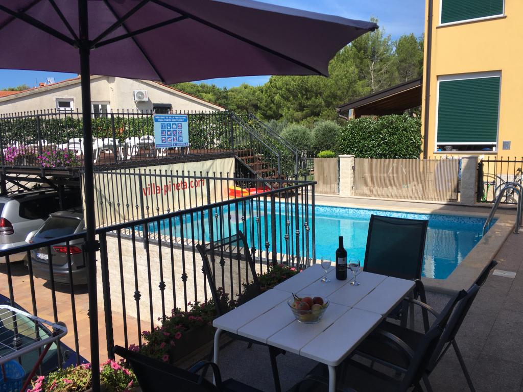 Villa Pineta se nachází v Fažana, v blízkosti Národního parku Brijuni a nedaleko Pineta, jen 650 metrů od pláže. Nabízí nezapomenutelnou dovolenou ve svých 5 moderně vybavených a komfortních apartmánech. Vila s výhledem na moře nabízí relaxaci, potěšení z čerstvého mořského vzduchu a výhody blízkého borového lesa, rekreaci a aktivní dovolené. Apartmány jsou klimatizované s bezplatným připojením k internetu a satelitní TV. Pro každý apartmán jsou k dispozici dvě parkovací místa. Parkování je také uzavřeno pod dohledem bezpečnostních kamer.