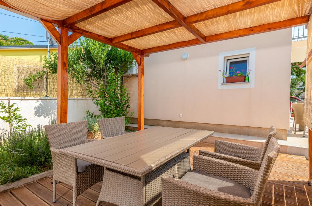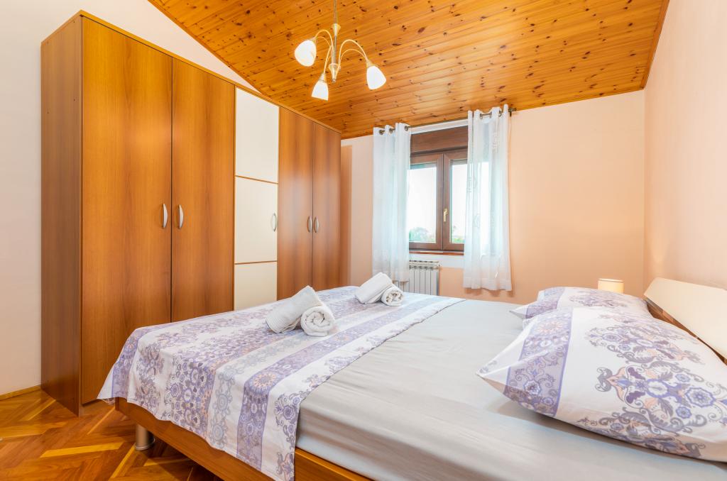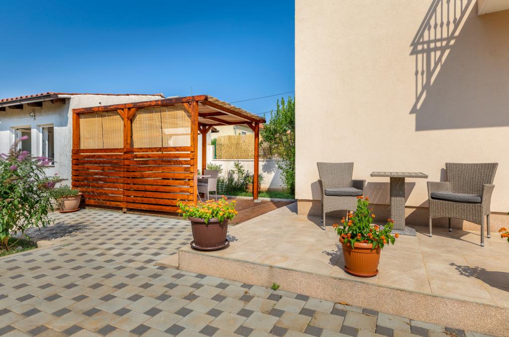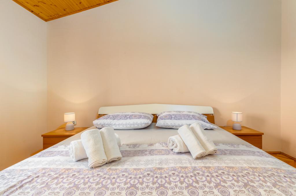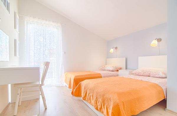 Plně a moderně vybavený a prostorný rekreační apartmán v klidné části Valbandonu. Apartmán má ložnici s manželskou postelí, ložnici se 2 samostatnými lůžky, kuchyň s jídelnou, obývací pokoj, koupelnu a pěknou velkou terasu. Nachází se v prvním patře rodinného domu, kde bydlíme, a má samostatný vchod.
