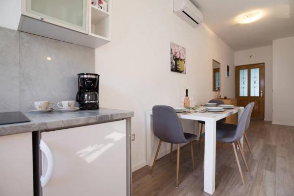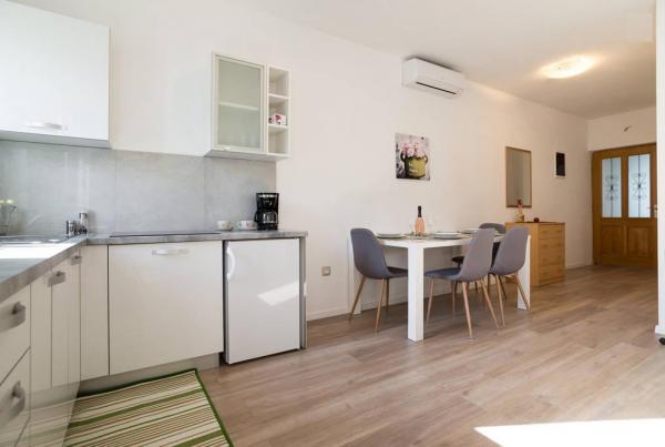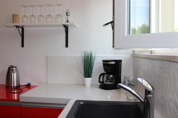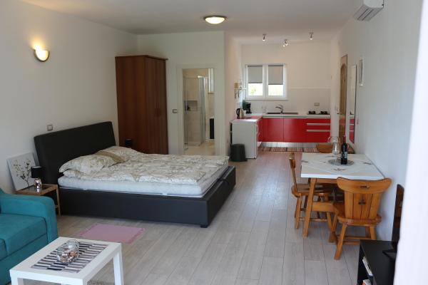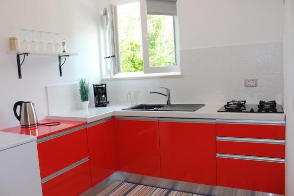 Nabízíme zcela nové, moderní a luxusně zařízené apartmány. V přízemí je studio a malý apartmán pro 4 osoby, zatímco celé první patro je vyhrazeno pro velký byt, který se může ubytovat maximálně 6 osob. Zvuky přírody, která nás obklopuje, věříme, že se vám bude líbit svou dovolenou. Pro všechny hosty máme velkou a prostornou zahradu, kde můžete strávit svůj volný čas. K dispozici je také gril pro všechny, kteří se chtějí připravit středomořské speciality.