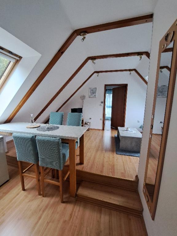 Apartmány Erika se nachází 800 m od centra Fužine. Jsou umístěny v rodinném domě se samostatným vchodem pro hosty. Máme dva apartmány a jsou v kategoriích s hvězdičkami *** a **** a dvoulůžkový pokoj se samostatnou koupelnou v kategorii s hvězdičkami ***. Naše ubytování nese označení Kvarner family quality a pod značkami Hike friendly, Bike friendly. Máme úschovnu pro osm kol. Hosté apartmánu mají k dispozici naši zahradu, která je krásně zdobená a má spoustu zeleně. Máme zahradní gril, dětské hřiště, které se skládá ze skluzavky, houpačky, houpačky a badmintonového kurtu. Hosté si mohou v klidu užívat grilování, stínu a čerstvého horského vzduchu. Apartmány mají ústřední topení, klimatizaci a Wi-Fi připojení. Nedaleko se nachází náš adrenalinový park (Vara fun and paintball park), který můžete navštívit v letních měsících. Přijďte a pociťte kouzlo malého městečka v Goranu a teplo domova v našich apartmánech, které mnozí naši milí hosté pocítili a zažili a kteří se odvděčili mnoha chválami a doporučeními. Vítejte!