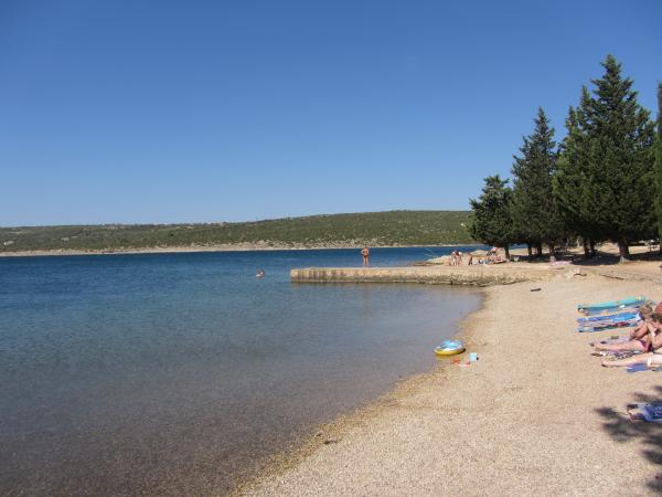 Ideální místo pro rodinnou dovolenou. Pláž se stínem, kavárna, obchod a restaurace se nachází v okruhu 100 metrů. Plně vybavené apartmány s terasou, klimatizací, internetem, možností využití venkovní kuchyně s grilem. Pokud máte rádi aktivní dovolenou, apartmán se nachází pod Velebitem, kam se dostanete pěšky nebo autem. Z kopce je nádherný výhled na celý záliv.