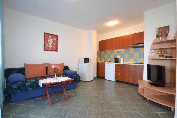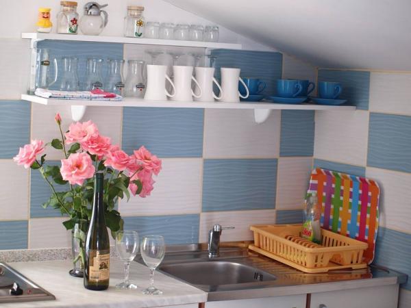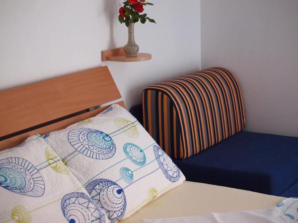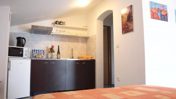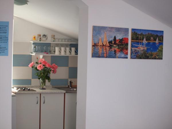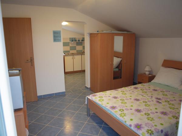 Lidé požadovaného klidu jistě odpočívají v těchto apartmánech, které mají vše, co potřebujete pro dovolenou. Laskavost žen v domácnosti i její rodina jsou vynikající. Pohled na terasu je krásný. Všechno je čisté a uklizené, možnost použití grilu. Je dovoleno zůstat a domácí zvířata, která je chvályhodná. V blízkosti moře je moře.