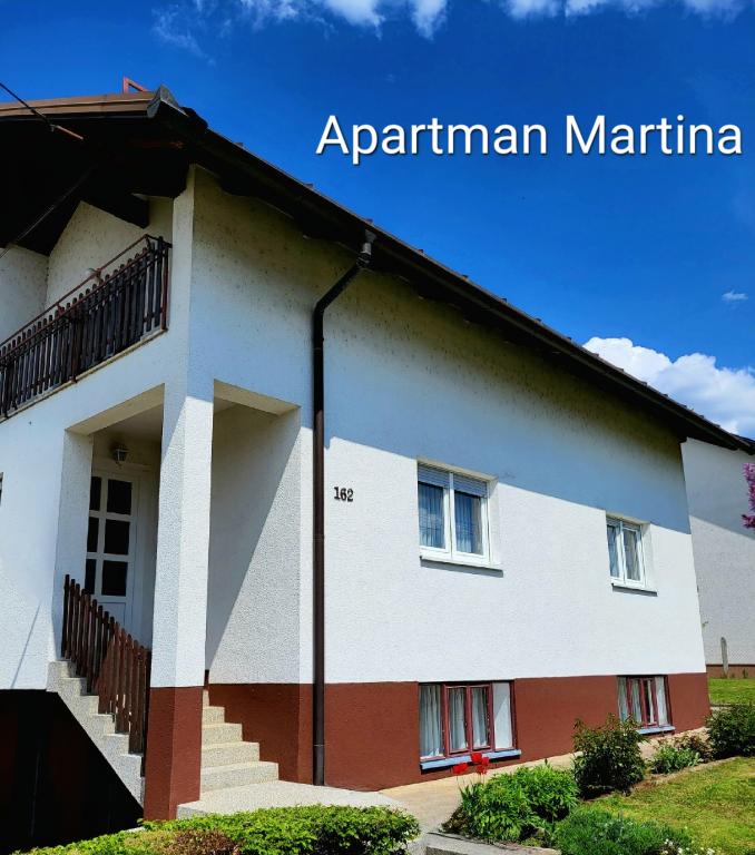 Apartmán Martina se nachází v rodinném domě, skládá se ze dvou ložnic, kuchyně s jídelnou, obývacího pokoje a koupelny. Před objektem je velké parkoviště, oplocený dvůr s altánem, plocha pro posezení a grilování. Při rezervaci apartmánu Martina se ubytujete v celém objektu sami.