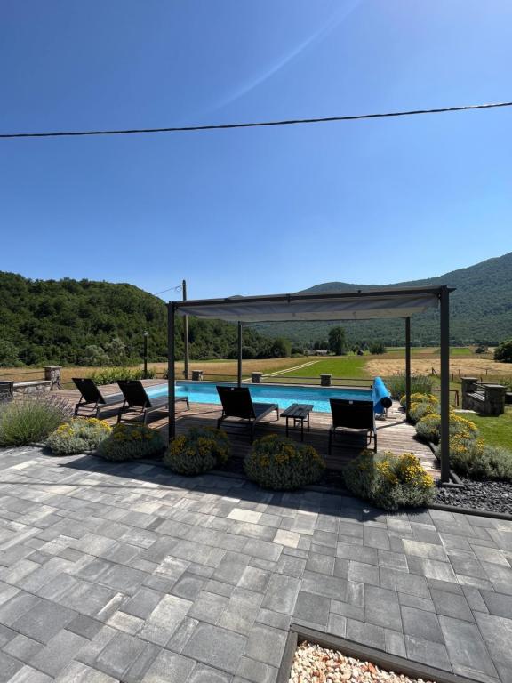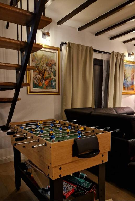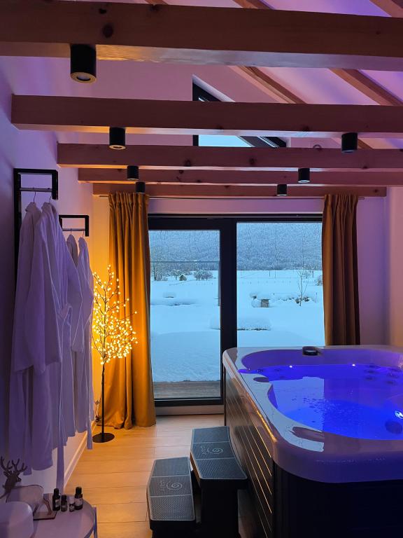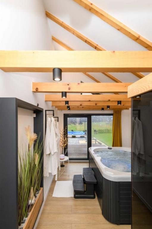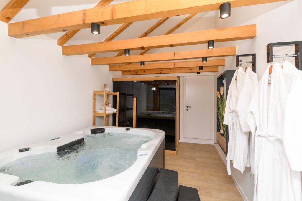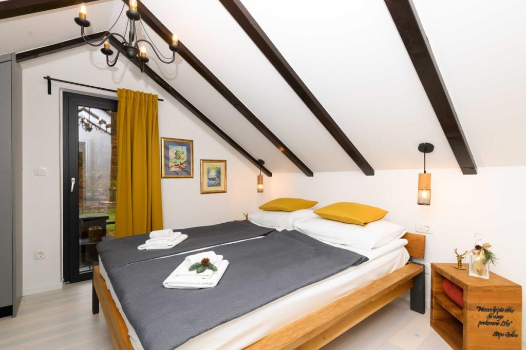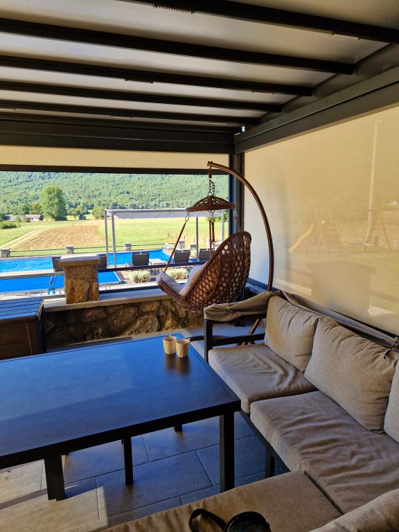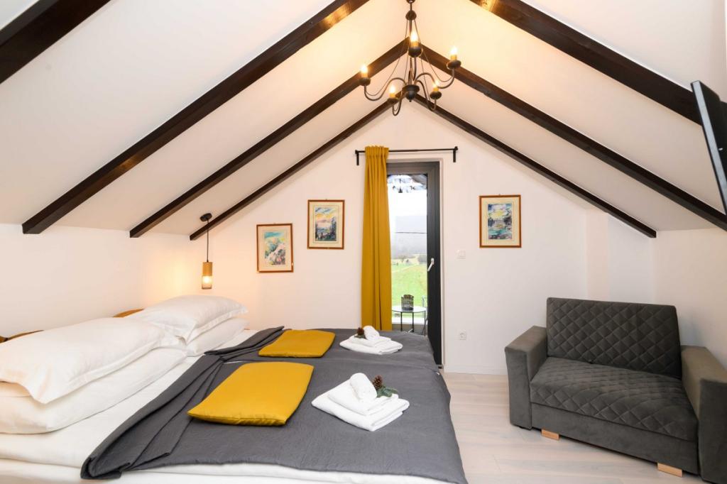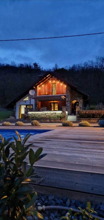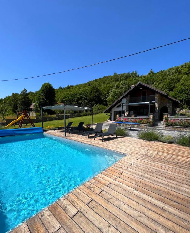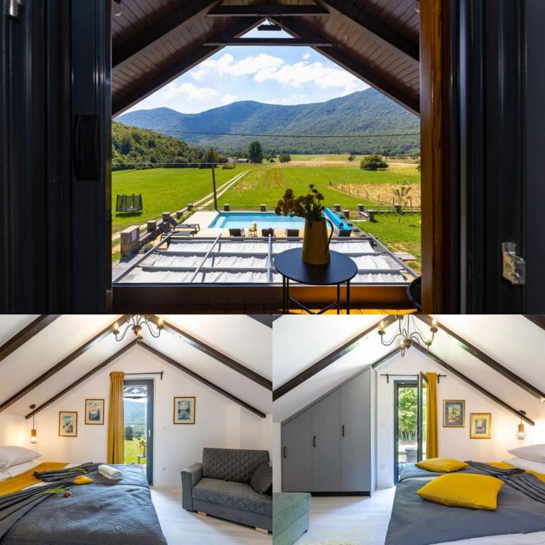 Rekreační dům Liko Diko se nachází na mýtině, na okraji lesa (na samotě), stranou od silnice (300 m) a je ideální pro dovolenou po celý rok. Směs tepla tradice a moderního vybavení je ideální kombinací pro autentický zážitek z přírody. Ať už hledáte dobrodružství, stýkat se s přáteli a rodinou nebo úplnou relaxaci, Liko Diko to vše nabízí svými nabídkami a umístěním! Se dvěma pokoji (každý se 3 lůžky a každý s vlastním balkonem), dvěma plně vybavenými koupelnami, jídelnou a kuchyní se všemi potřebnými spotřebiči a základními potravinami. Speciální zážitek poskytuje lázeňská část s prosklenou stěnou a výhledem do krásné krajiny - vířivka pro 4 osoby a biosolná sauna s himalájskou solí. Obývací pokoj (v případě potřeby lze využít rozkládací pohovku s matrací) s krbem, stolním fotbalem (minibiliard), dětským koutkem, společenskými hrami atd. Terasa krytá pergolou a plynovým grilem, venkovní bazén (květen -září), trampolína. stůl na stolní tenis, dětské hřiště, branky, jízdní kola,..