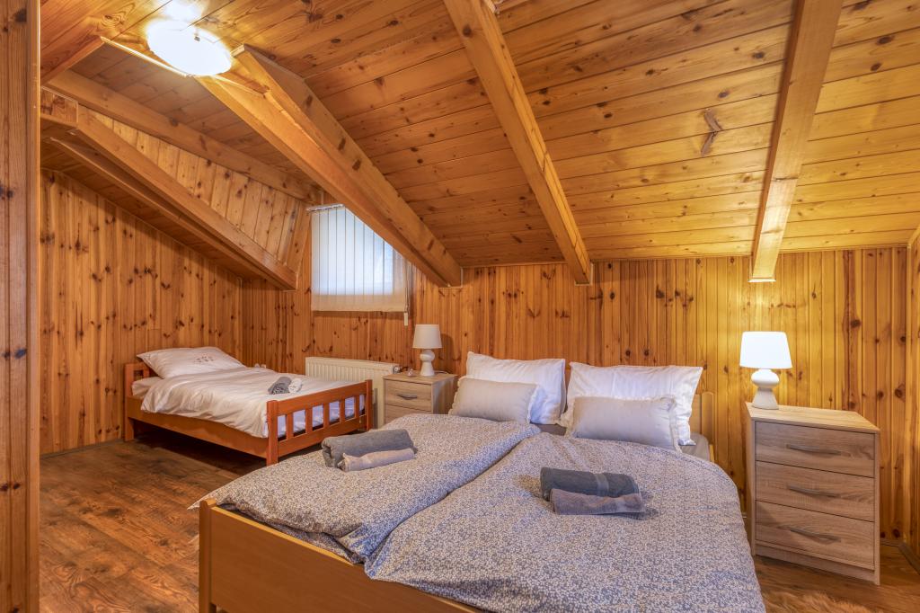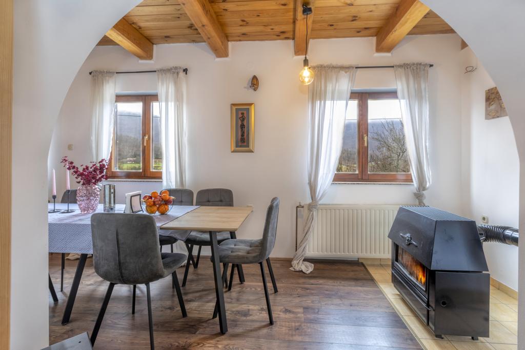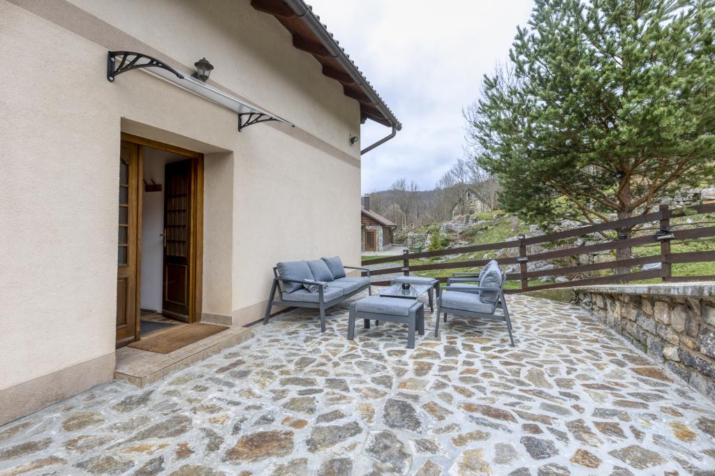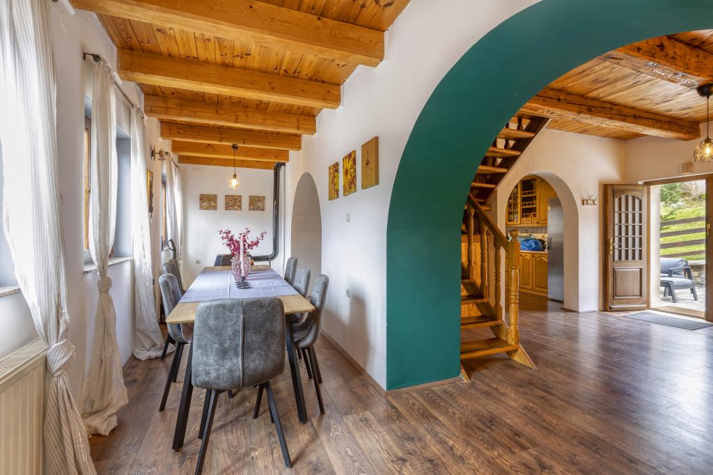 Prázdninový dům se nachází v přírodním parku Velebit, pouhých 35 minut od moře a 1 hodinu od národního parku Plitvická jezera. Nemovitost je izolovaná, s idylickým výhledem na les a Velebit. Na pozemku se nachází 3 budovy. Dům o 3 podlažích, garáž a malý dřevěný domek s velkým krbem a dřevěným stolem. V domě zažijete příjemnou atmosféru s mnoha dřevěnými prvky a pohodlným nábytkem. V přízemí se nachází velký obývací pokoj, kuchyň a koupelna. Krásné dřevěné schody vás zavedou do prvního patra, kde jsou 4 velmi pohodlné pokoje a koupelna. V suterénu je herna s kulečníkem, stolním fotbalem a šipkami. Interiér celého domu je pečlivě vyzdoben, se vším, co potřebujete pro maximální pohodlí a pohodový pobyt.