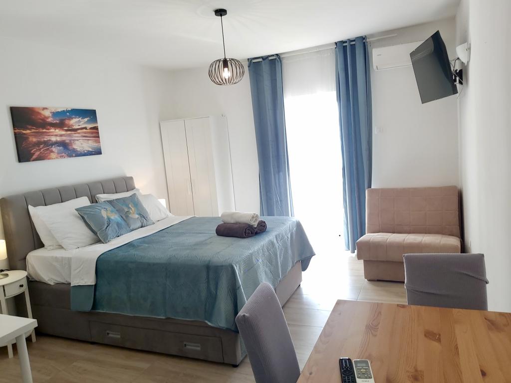 Krásný byt pro dva, výhled k zapamatování. Balkon, kde jsme strávili nádherné chvíle pozorováním západu slunce u krásného Jaderského moře. Hostitelé jsou milí a vstřícní, nejsou dotěrní, což je příjemné.
