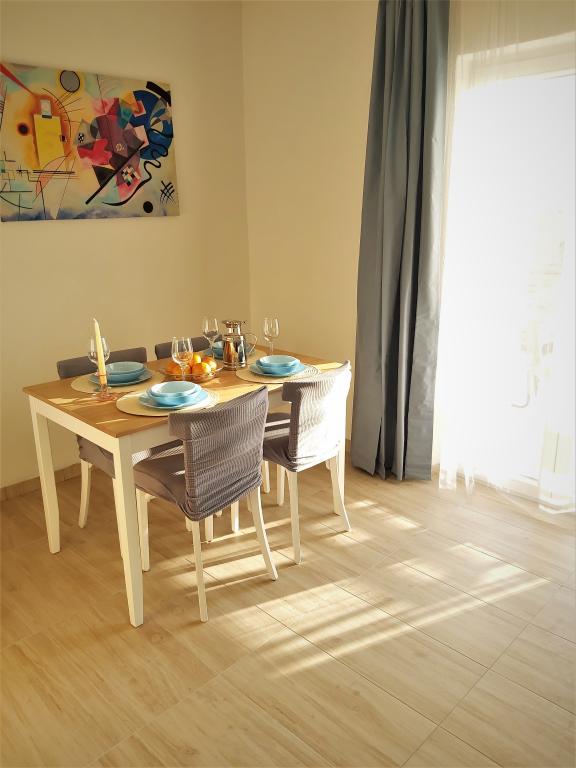 Bydleli jsme v bytě Ariana ve druhém patře. Je poměrně prostorný a vybavený vším, co potřebujete, dokonce i pračkou. Oba pokoje jsou klimatizované, což nám poskytlo soukromí, protože jsme nemuseli nechávat dveře pokoje otevřené. Balkon má krásný výhled na moře a hory, je dostatečně velký na večeři, je orientován na klidnou stranu, kde neprojíždějí žádná auta. Parkování je bezpečné ve dvoře domu. Rádi přijedeme znovu.