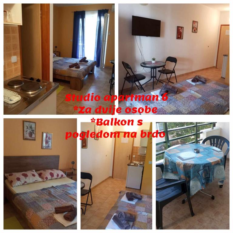 Villa Ana se nachází v malém, klidném dalmatském městečku Gradac. Nacházíme se přímo u pláže, která je vzdálená méně než minutu chůze. V blízkosti je veškerá potřebná občanská vybavenost, obchody, restaurace, kavárny a podobně. Villa Ana se skládá ze 6 studio apartmánů pro 2, 2+1 a 3 osoby. Všechna studia mají mini kuchyň s mikrovlnnou troubou a rychlovarnou konvicí, TV, klimatizaci, WiFi a balkon. 4 ze 6 apartmánů mají výhled na moře, zatímco dva mají výhled na hory. Parkování je zajištěno před domem. Těšíme se na vaše příjezdy.
