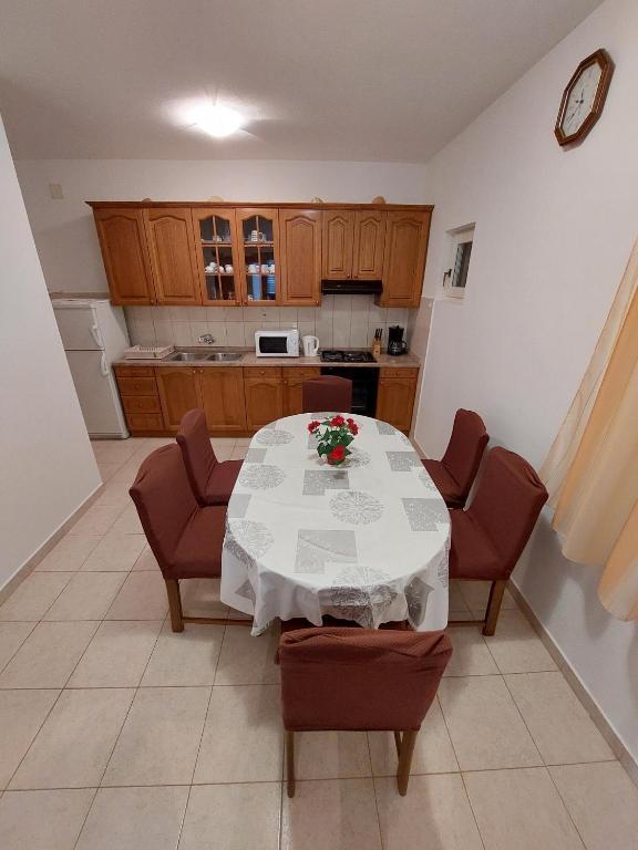 Apartmán Anči se nachází v rodinném domě s prostornou terasou s výhledem na moře v klidném městečku Grebaštica nedaleko Šibeniku. Grebaštica je malé místo mezi Šibenikem a Primoštenem, které se nachází v klidné zátoce s mimořádně čistým mořem a hustým borovým lesem na kopci Jelinjak a zátoce Oštrica. Místo má veškeré potřebné vybavení. Místo je ideální pro odpočinek a relaxaci, nabízí možnost zapůjčení loděk, turistiku, cykloturistiku a podobně. Apartmán Anči Vám nabízí ubytování v 1 ubytovací jednotce: Apartmán 1. - od 6 do 7 osob Ubytovací jednotka je zařízena standardním vybavením nezbytným pro dovolenou. Hosté mají k dispozici bezplatné parkoviště, velkou terasu, oplocený dvůr, venkovní sprchu a gril. V případě všech dotazů jsme vám rádi k dispozici.