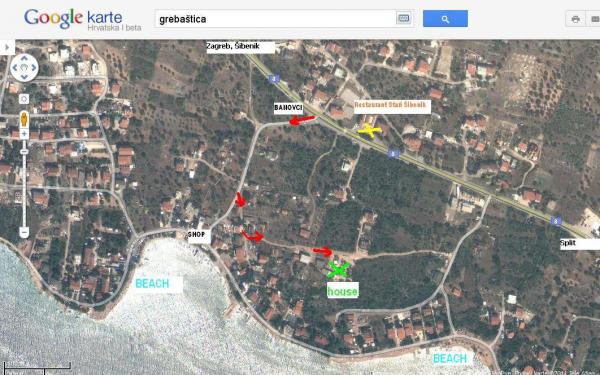 Grebaštica je malebné malé místo nacházející se ve stejnojmenné zátoce mezi Šibenikem a Primoštenem. Pláže jsou oblázkové s křišťálově čistým mořem. Místo je ideální pro klidnou rodinnou dovolenou. Nabízíme k pronájmu 1 komfortní byt v 1. patře:, velikost 70 m2, sestávající z: 2 pokojů s manželskými postelemi (možnost přistýlek), koupelny s WC (sprchový kout), obývacího pokoje a kuchyně (lednice s mrazákem), terasa 20 m2 s výhledem na moře. Byt je klimatizovaný, má TV se satelitním příjmem, Wi-Fi připojení k internetu, gril, zahradu... Dále nabízíme nově zrekonstruované studio pro 2 osoby. Vítejte! Vaši hostitelé - Mirko a Jadranka; tel: +385 95 832 3015
