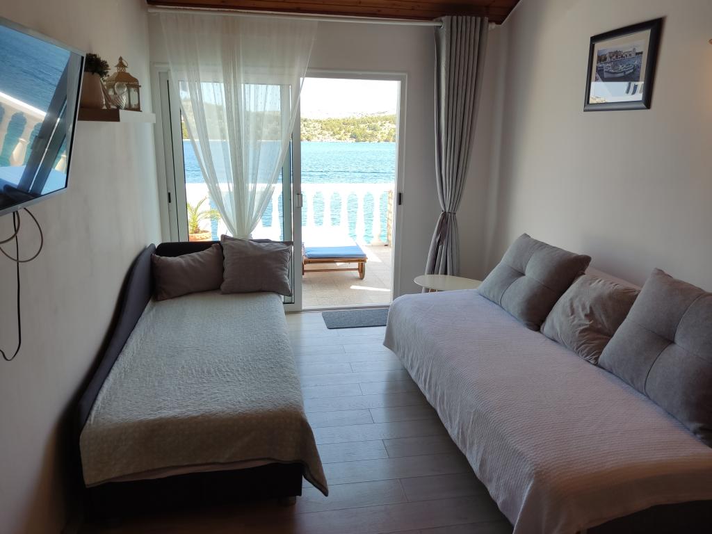 Celý dům se třemi apartmány je k pronájmu, ideální pro tři rodiny a skupiny do 12 osob. Dům se nachází na pěkném místě, 7 m od pláže v klidném turistickém místě Šparadići. Dva apartmány mají prostorné terasy s krásným výhledem na moře a spodní apartmán má oplocenou zahradu. K dispozici je také velká terasa nad mořem s grilem a dvěma zahradními stoly, kde si hosté mohou posedět ve stínu fíkovníku a vinné révy. Majitelé v domě nebydlí. Všechny apartmány mají klimatizaci, bezplatné parkování, TV, WiFi, lehátka a slunečníky zdarma na pláži a terasách. Možnost kotvení lodí před domem. Ideální místo pro vaši rodinnou dovolenou. Vítejte.