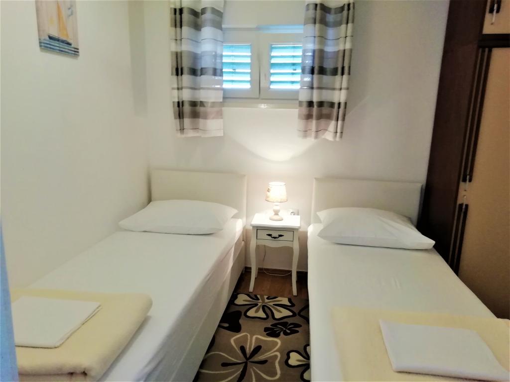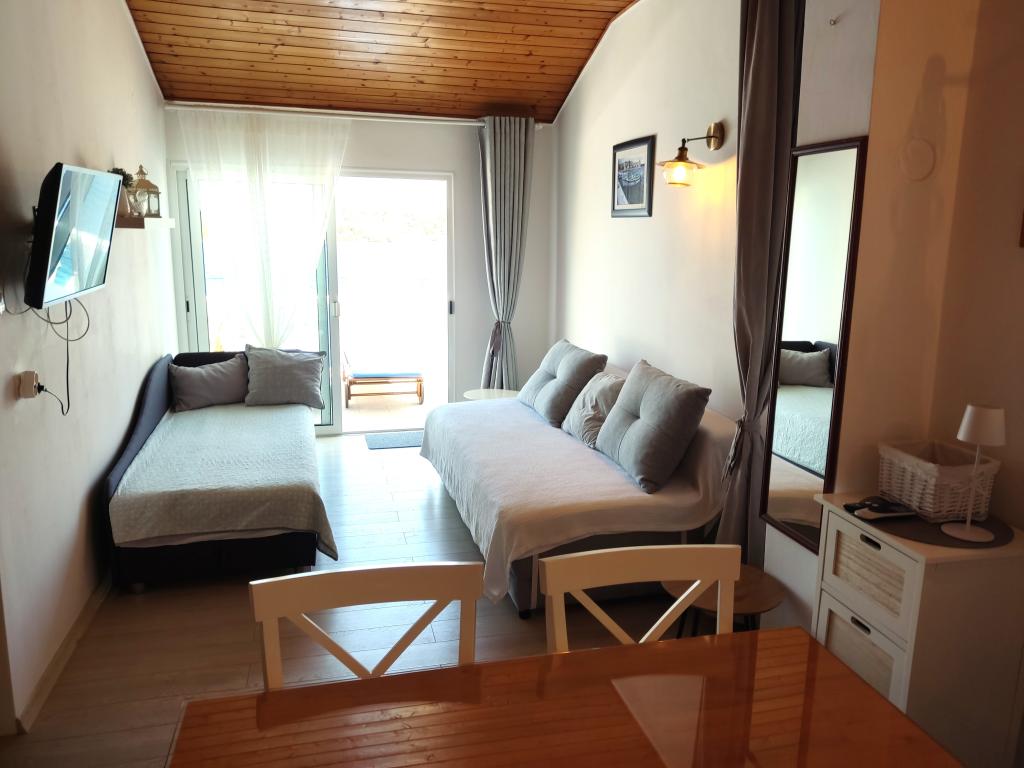 Dům je na skvělém místě - několik metrů od moře. Byli jsme stromové rodiny - celý dům byl náš. Měli jsme vlastní pobřeží, lehátka, slunečníky, velký dvůr as venkovní kuchyní - vše bylo zahrnuto v ceně těchto apartmánů. Vše čisté, místa dostatek. Majitel byl neuvěřitelný a velmi nápomocný. Setkal se s námi s uvítacími studenými nápoji, doporučil místa k večeři. Před naší cestou poslal fotky s vodou, pláží pro děti atd. na co jsme se ptali. V tomto místě nejsou žádné obchody, ale každý den jsou zde místní lidé, kteří každé ráno nosili chleba, zmrzlinu a zeleninu.