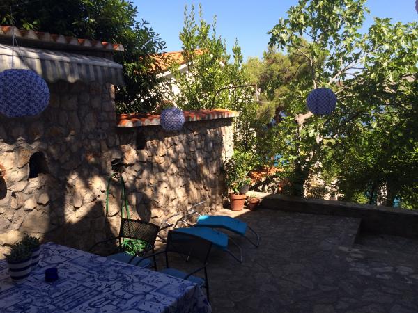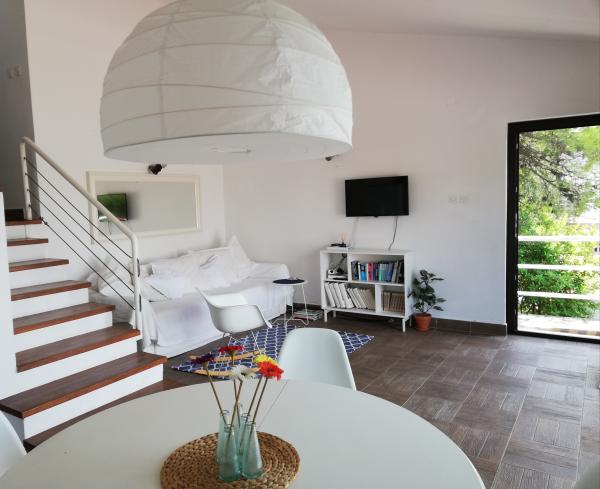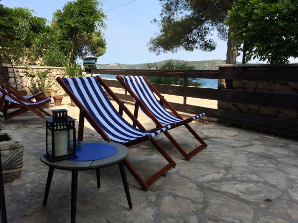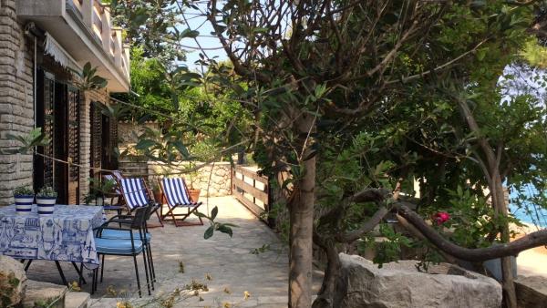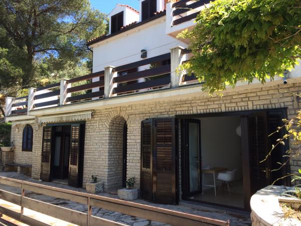 Plně vybavené a moderní apartmány v klidném místě Šparadići pouhých 8 km od centra města. Dům se nachází v první a jediný řádek k moři s velkou zahradou obklopený zelení a borovicemi. Architektura je směsicí moderní a tradiční dalmatské domě s mozaiky, kamenné sochy a kamenné cesty, které vedou přes prostornou středomořské zahrady osázené s místními rostlinami a stromy, stejně jako voňavé levandule, rozmarýn, slaměnek a olivovníky, fíky a citrony ... V naší zahradě hosté mohou vychutnat přípravu jídla na několika externích gril a příjemné společnosti na velké kamenné terase s velkým rustikálním kamenný stůl. Dům, který je obklopen stromy a středomořské zahrady na jedné straně a křišťálově čisté, azurově modré moře na druhé straně, je ideální pro jedinečné chvíle klidu a relaxace. Moře je pouhých 5 metrů od domu; soukromou pláž a pobřeží v šířce cca. 60 m používají hlavně naše hosty, stejně jako kamenné molo s mozaikou a dřevěnou plovoucí ponton v prodloužení.