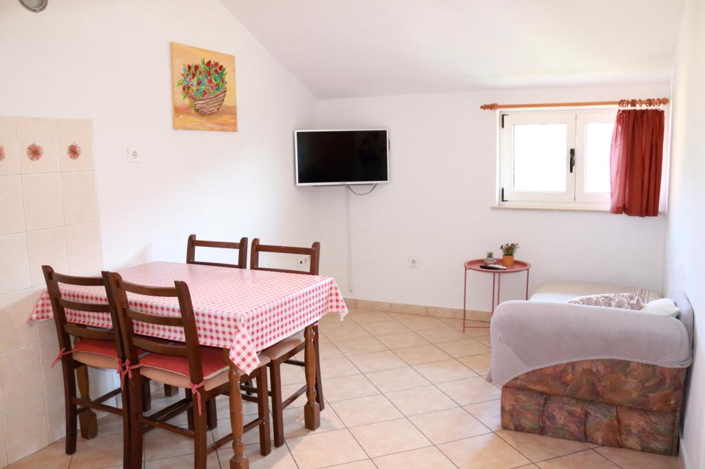 Apartmány se nacházejí v malém, klidném místě na pobřeží Jaderského moře. Pláž se nachází ve vzdálenosti 100 m. Areál je dobře osvětlený a vzdušný. K dispozici máte krb, venkovní sprchu, parkoviště, venkovní prostor pro obědy a společenské akce, balkon, klimatizaci... V blízkosti se nachází město Šibenik s vynikající nabídkou kultury a nočního života. V blízkosti se nachází několik národních parků a 70 km od místa jsou větší města jako Split a Zadar. Apartmány se nacházejí v prvním patře domu a v přízemí bydlí hostitelé, kteří jsou vám vždy k dispozici.