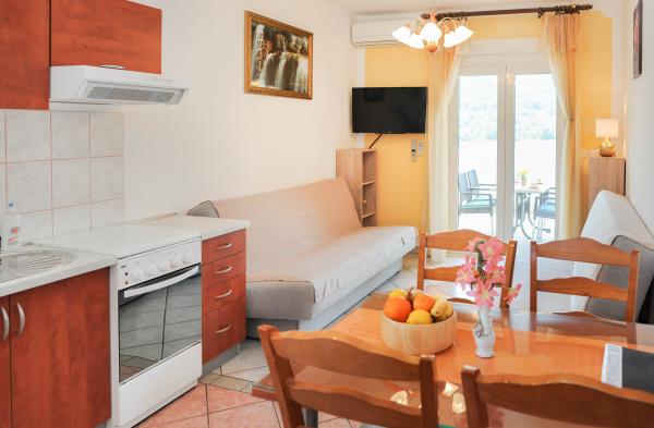 Vítejte na VILA MORE nachází na slunném pobřeží v místě zvaném. Pěkně zařízené apartmány (48-62-72m2) zahrnují: ložnice, obývací pokoj s kuchyňským koutem, koupelna se sprchovým koutem a balkonem. Na Vaši žádost, můžete využít terasu, gril, venkovní sprcha, Kotvení lodí a pěkné parkoviště pro vaše auto, zdarma. K vašim službám je kánoe a člun - 5 metrů. Každý byt může ubytovat 2, 3 nebo 4 osoby. Apartmán č. 1 má výhled na les a parkování a bočním výhledem na moře a apartmány NO. 2, 3, 4 a 5 mají přímý výhled na moře. Přímo u moře - 10 metrů. Mají příjemný čas v Vila více bytů!