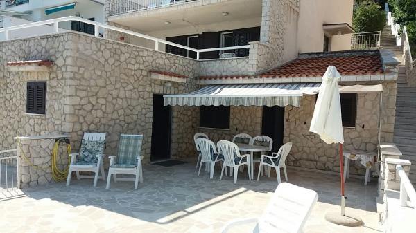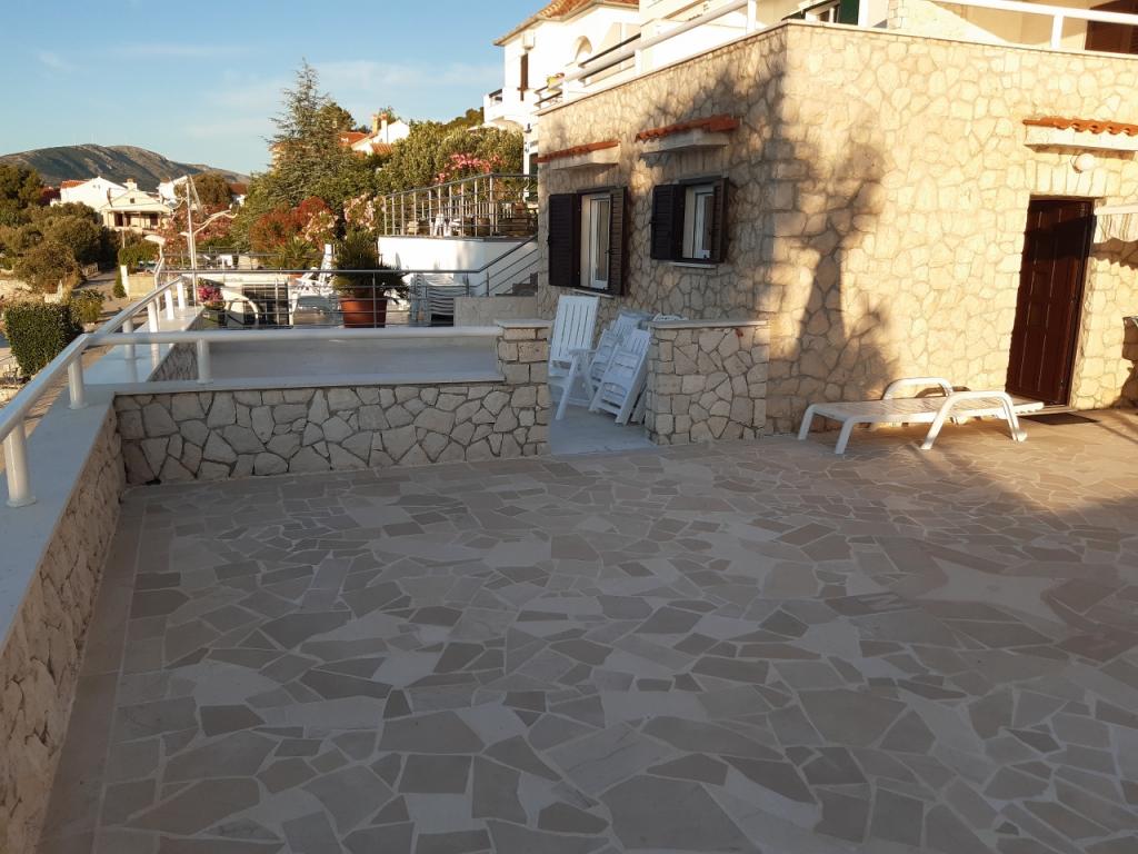 Dům u moře s nábřeží a krásné velké kamenné terasy, kde hosté rádi zůstanou.