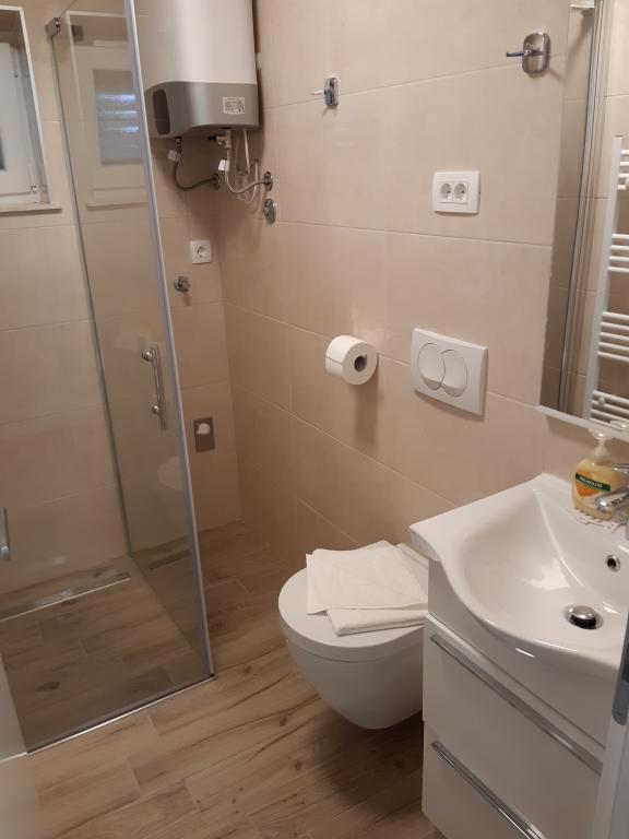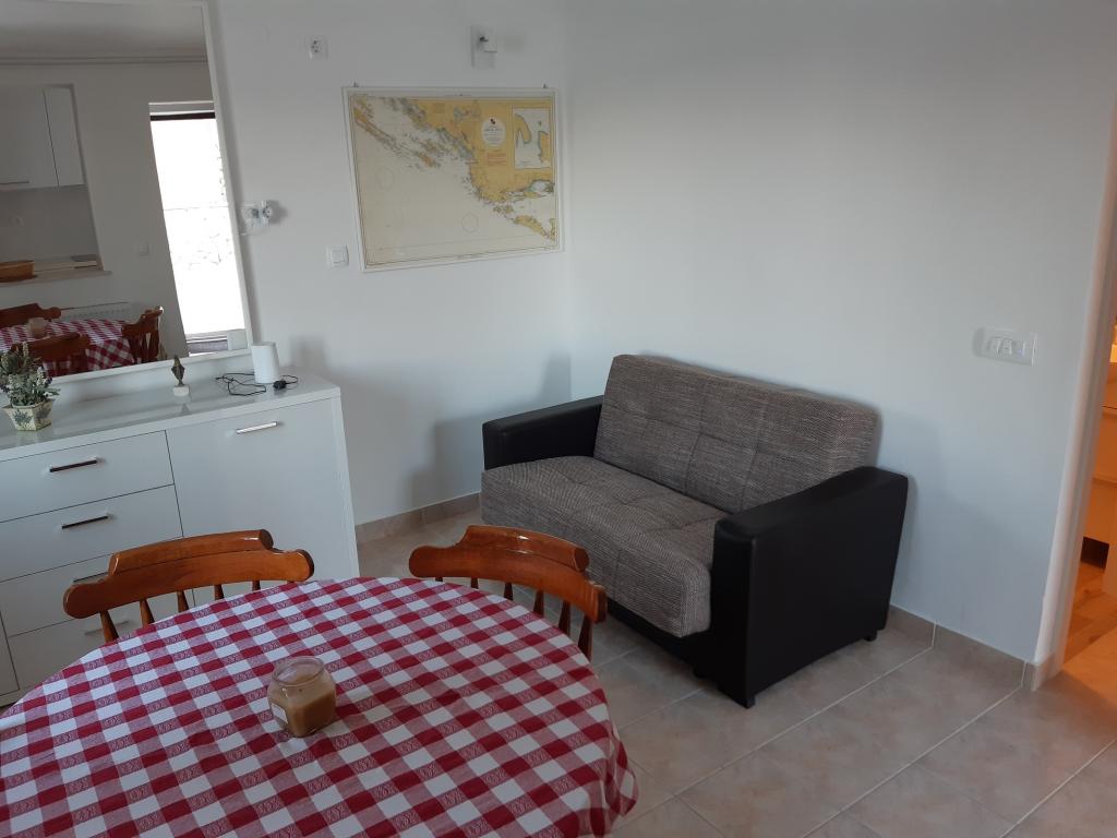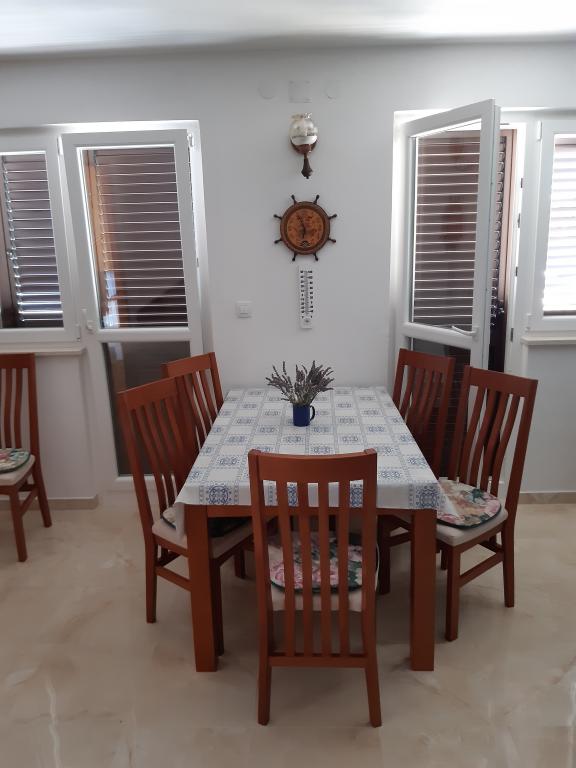 Pobytová taxa je v ceně.Přestože dolní byt (A4) je nejmenší a nemůže v kategorizaci získat více hvězd, je oblíbeným hostem a během dne všichni zůstávají na terase (100 metrů čtverečních) dolního bytu. V bytě je TV s filmovými a sportovními kanály, klimatizace, internet a pračka, kuchyň, koupelna a dvě ložnice pro 4 osoby. Horní byt (A8) pro 8 osob s klimatizací a internetem je rozdělen na dvě jednotky, dolní a horní. Dolní jednotka má velkou terasu (45 metrů čtverečních), TV s filmovými a sportovními kanály. pračka, koupelna, kuchyň a pokoj se dvěma lůžky a horní jednotka má tři ložnice pro 6 osob, kuchyň a koupelnu a velký balkon (16 metrů čtverečních) s krásným výhledem na moře.